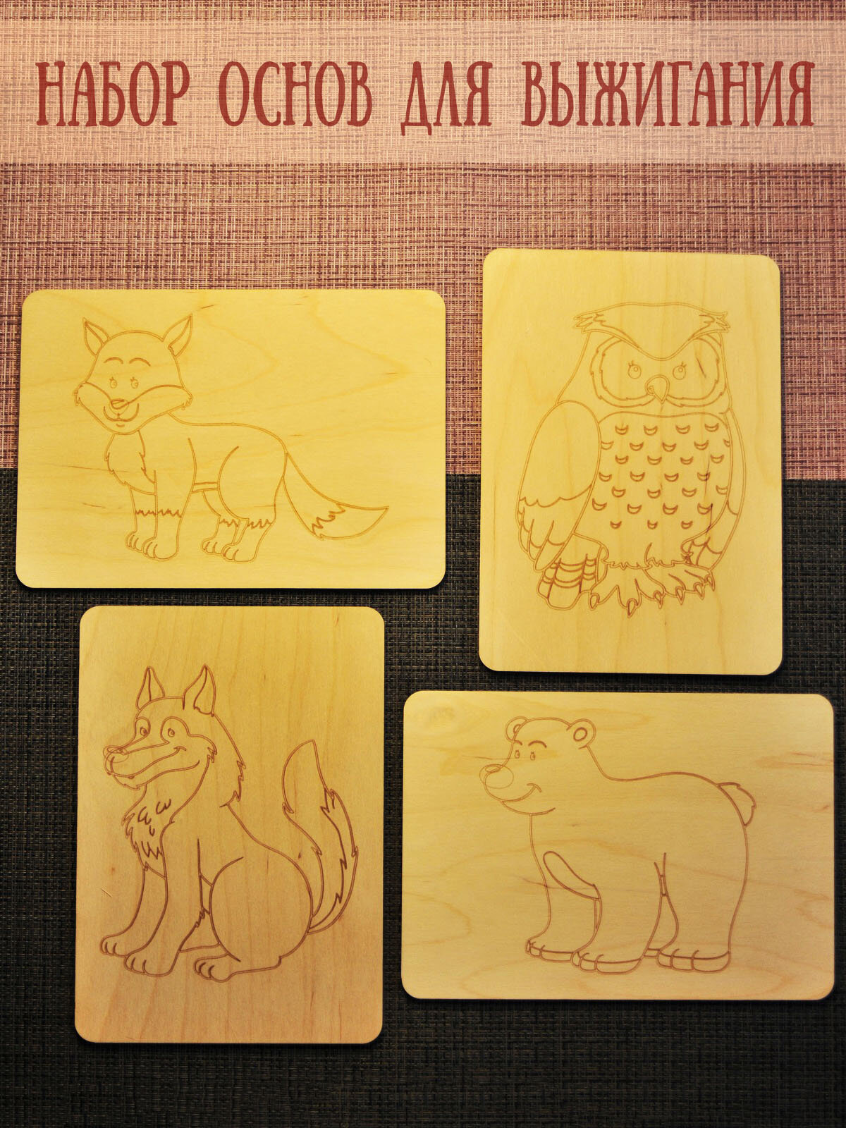 Купить Набор основ для выжигания по дереву, доска для рисования RiForm с рисунком "Лесные Животные", формат А5, 4шт, фанера 4мм