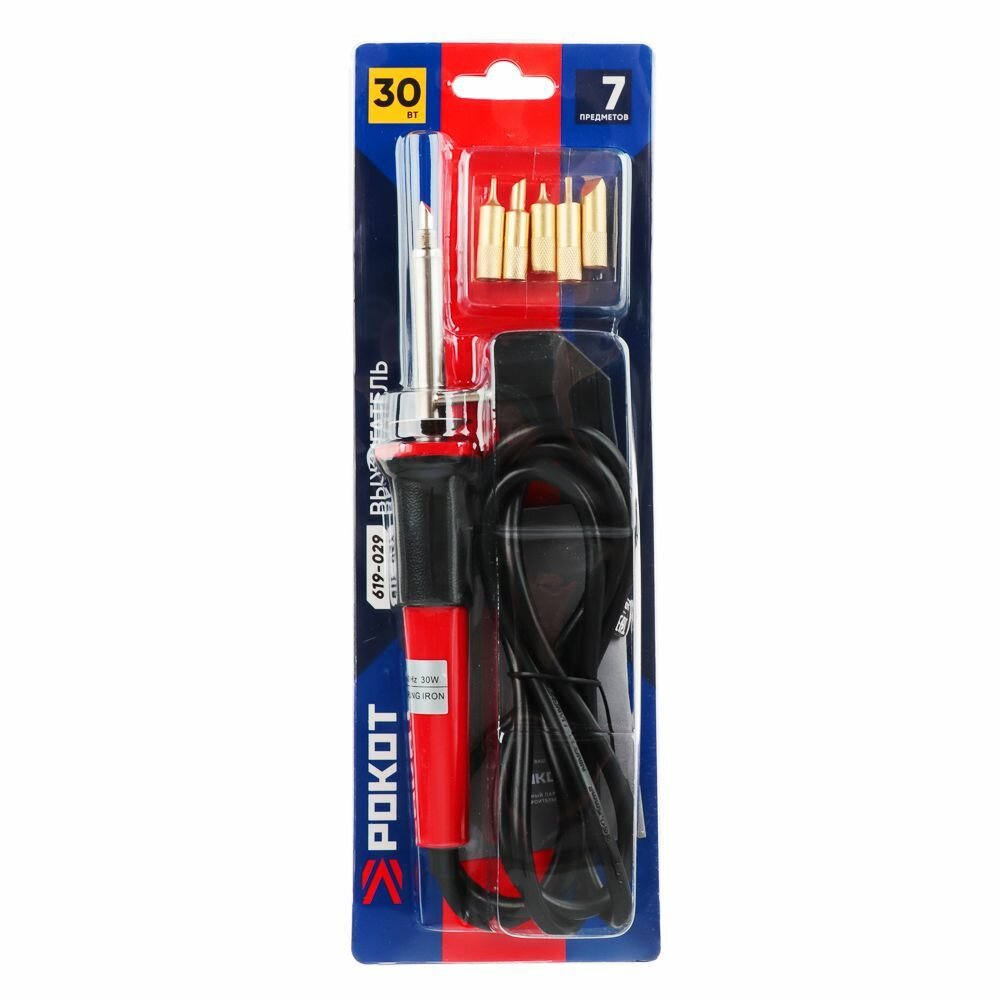 Купить Рокот Выжигатель 30 Вт, 7 предметов, насадки для выжигания, жала разной формы и диаметра