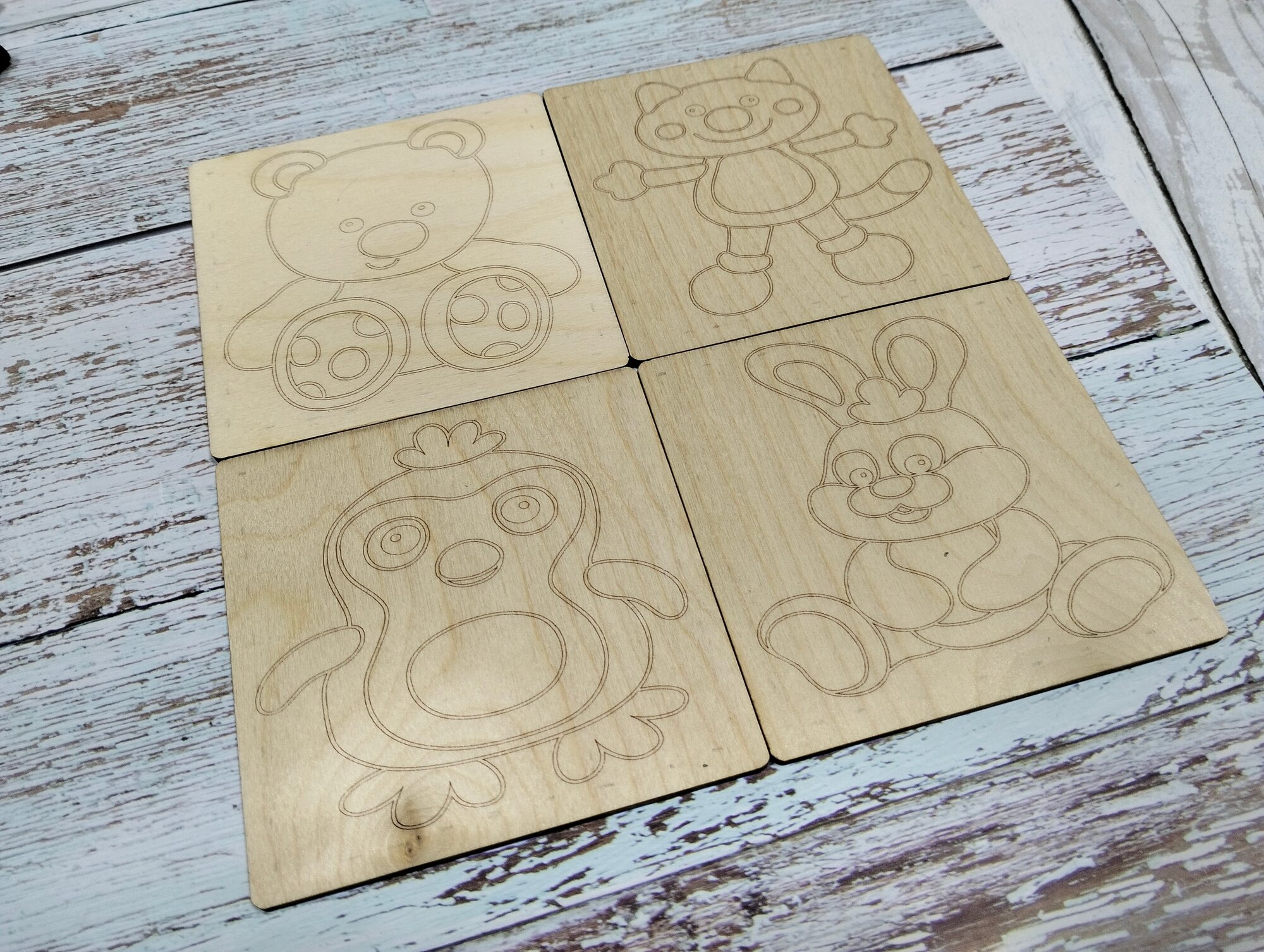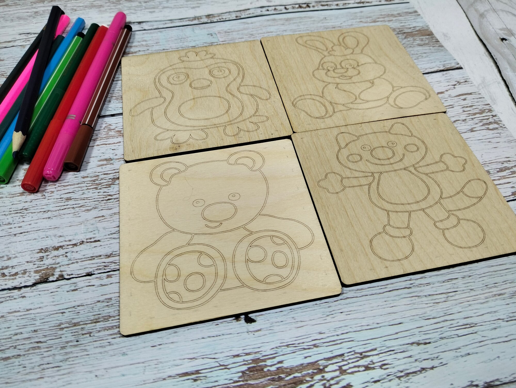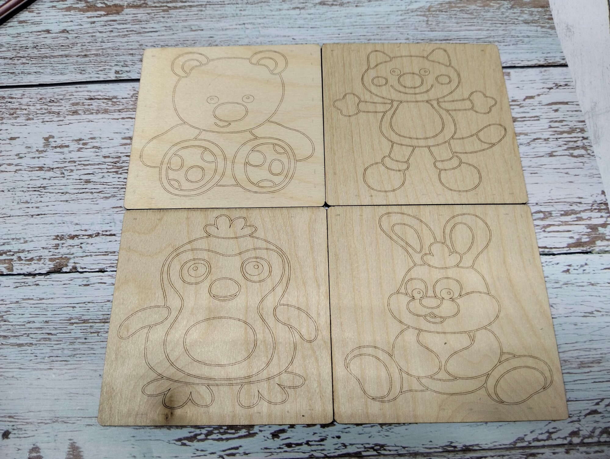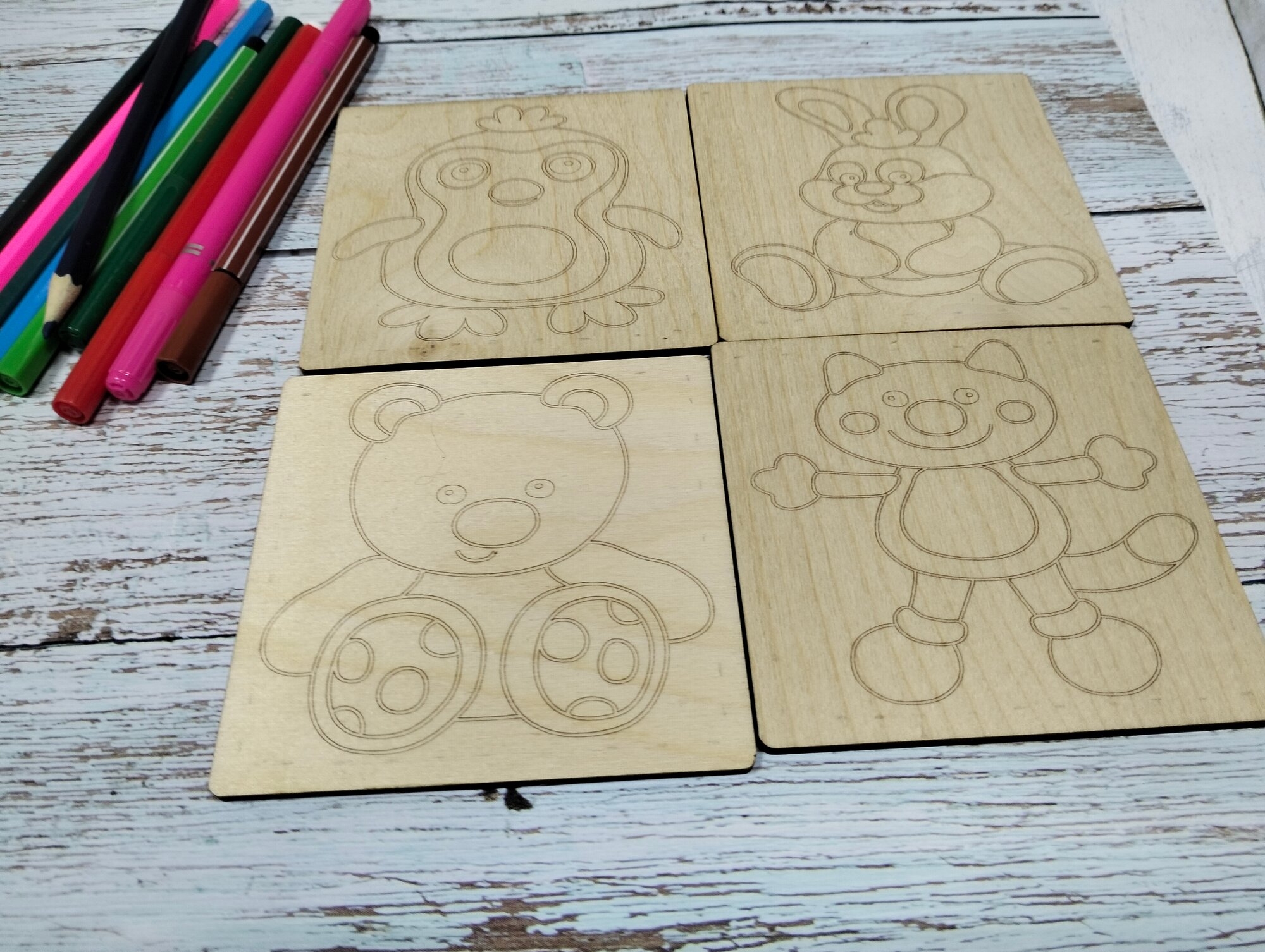 СохранитьНабор для раскрасок и выжигания, выжигание и раскрашивания по дереву."Зверюшки", 10х10 см, 4шт. интересное: