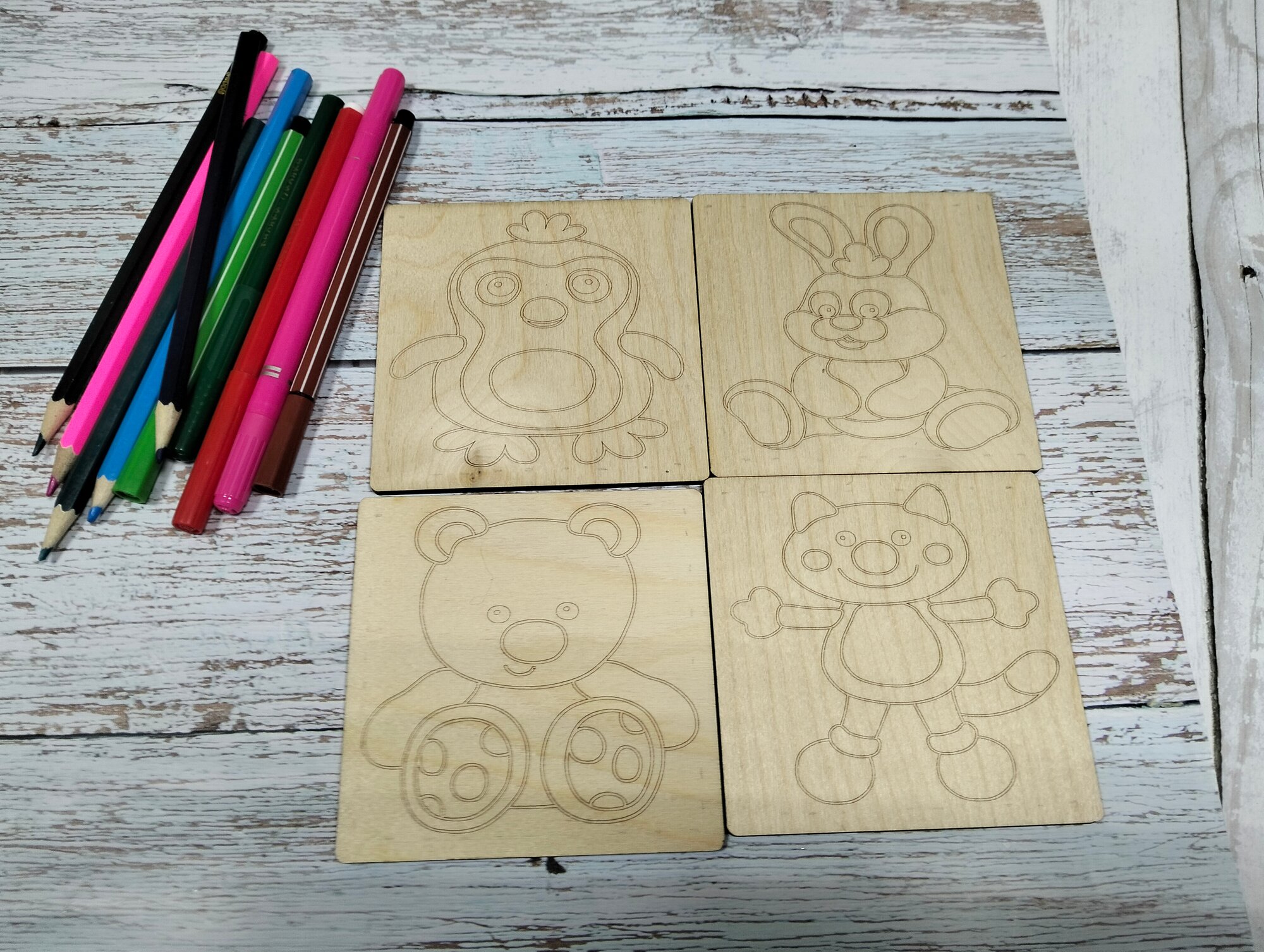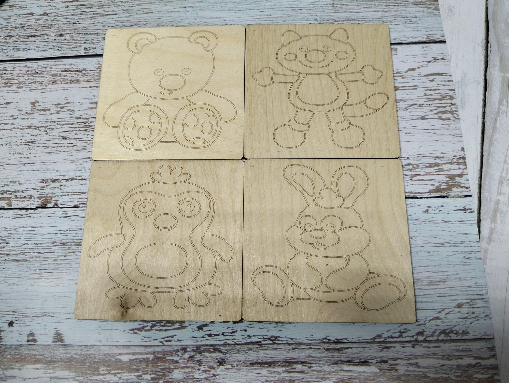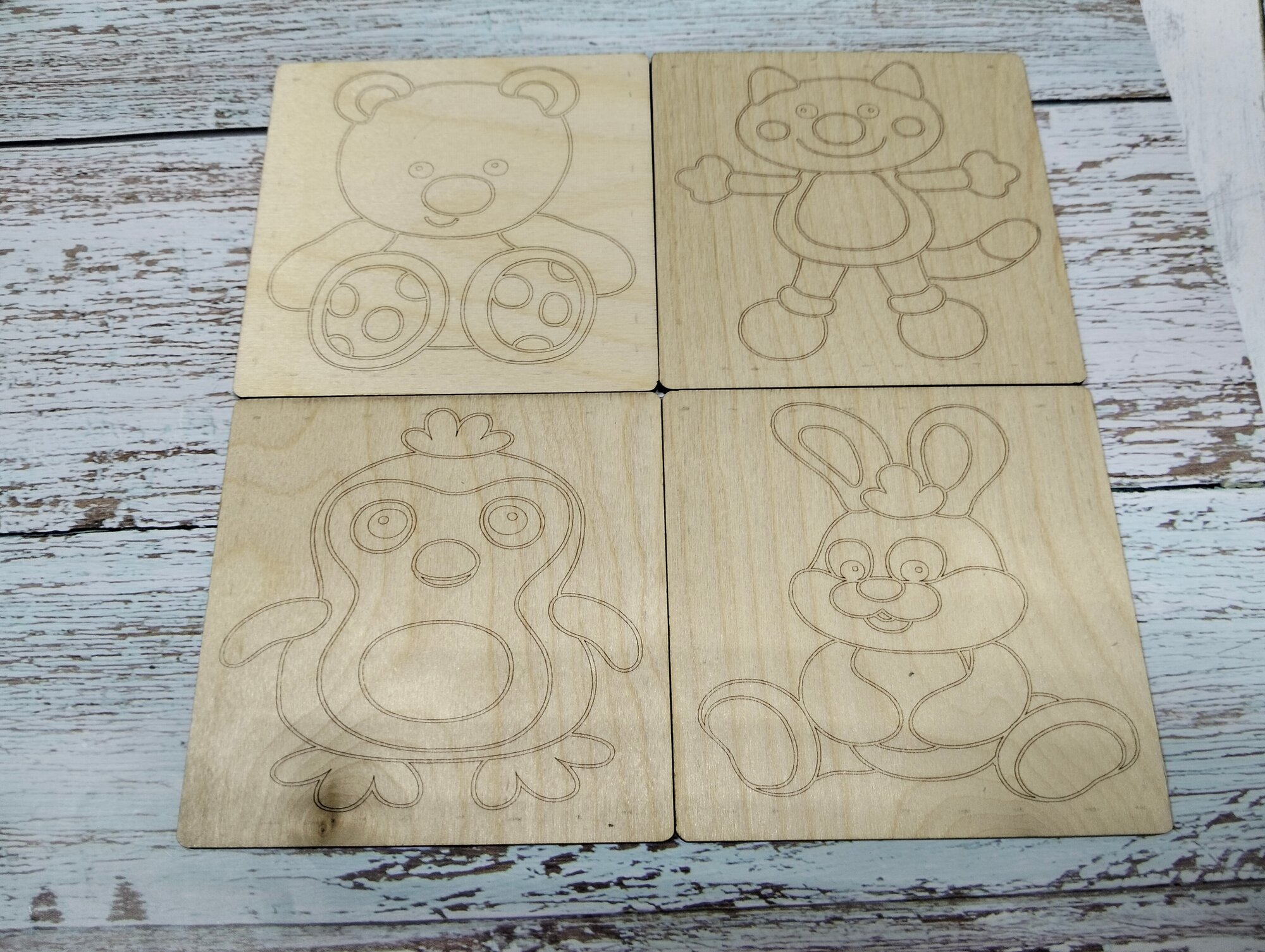 СохранитьНабор для раскрасок и выжигания, выжигание и раскрашивания по дереву."Зверюшки", 10х10 см, 4шт. интересное: