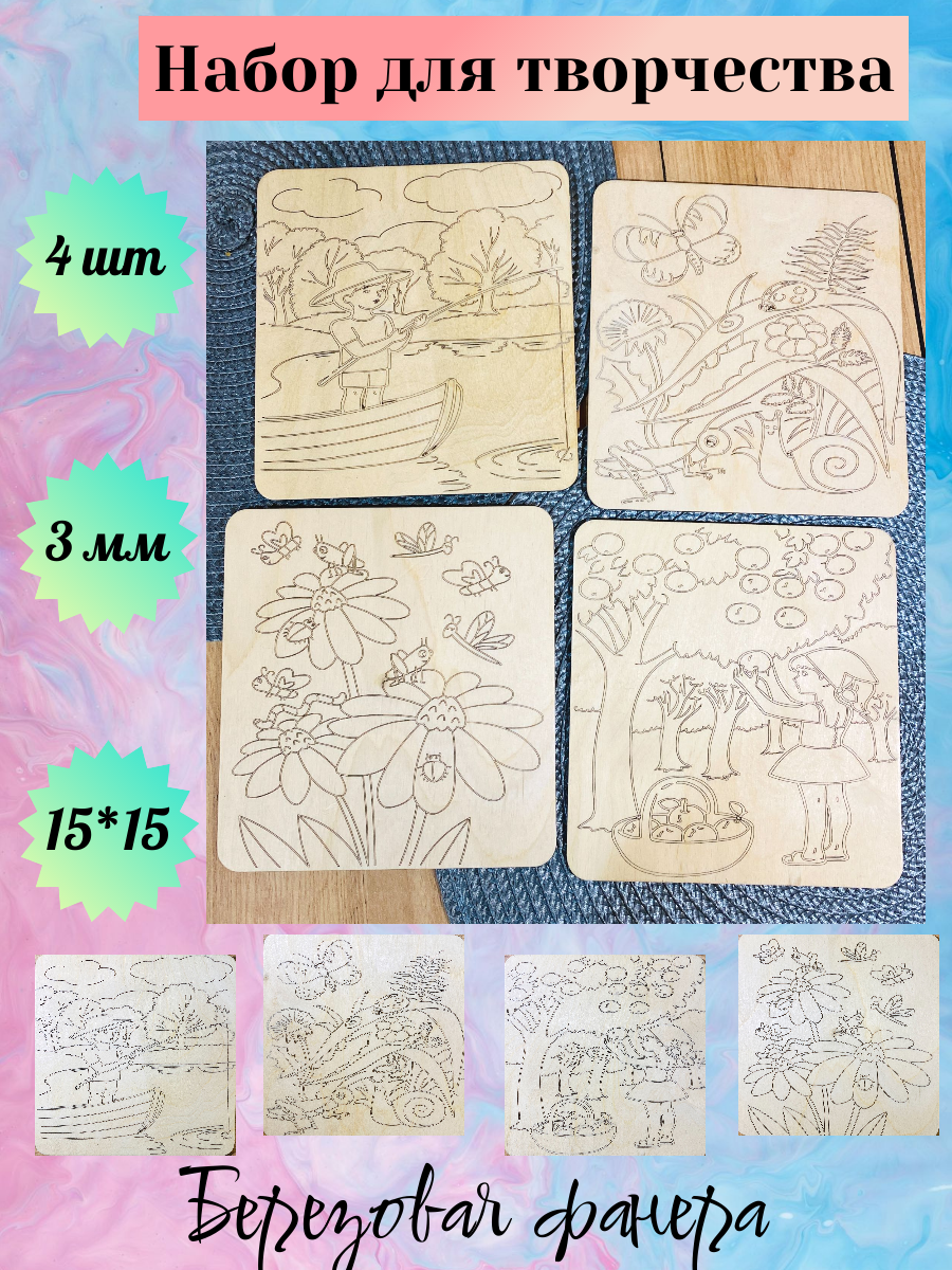 Набор досок (заготовок) Летние мотивы для выжигания и рисования по дереву, размер 15*15 см интересное: