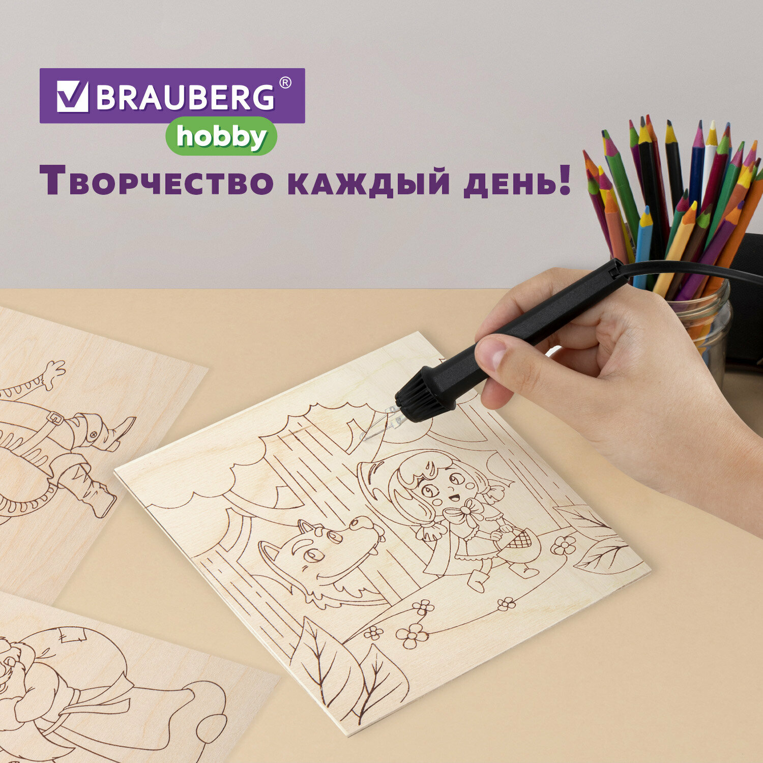 Набор для выжигания по дереву, деревянные заготовки для творчества Сказочные мотивы, 5 штук 10 рисунков, 15x15 см, Brauberg Hobby, 665306 интересное:
