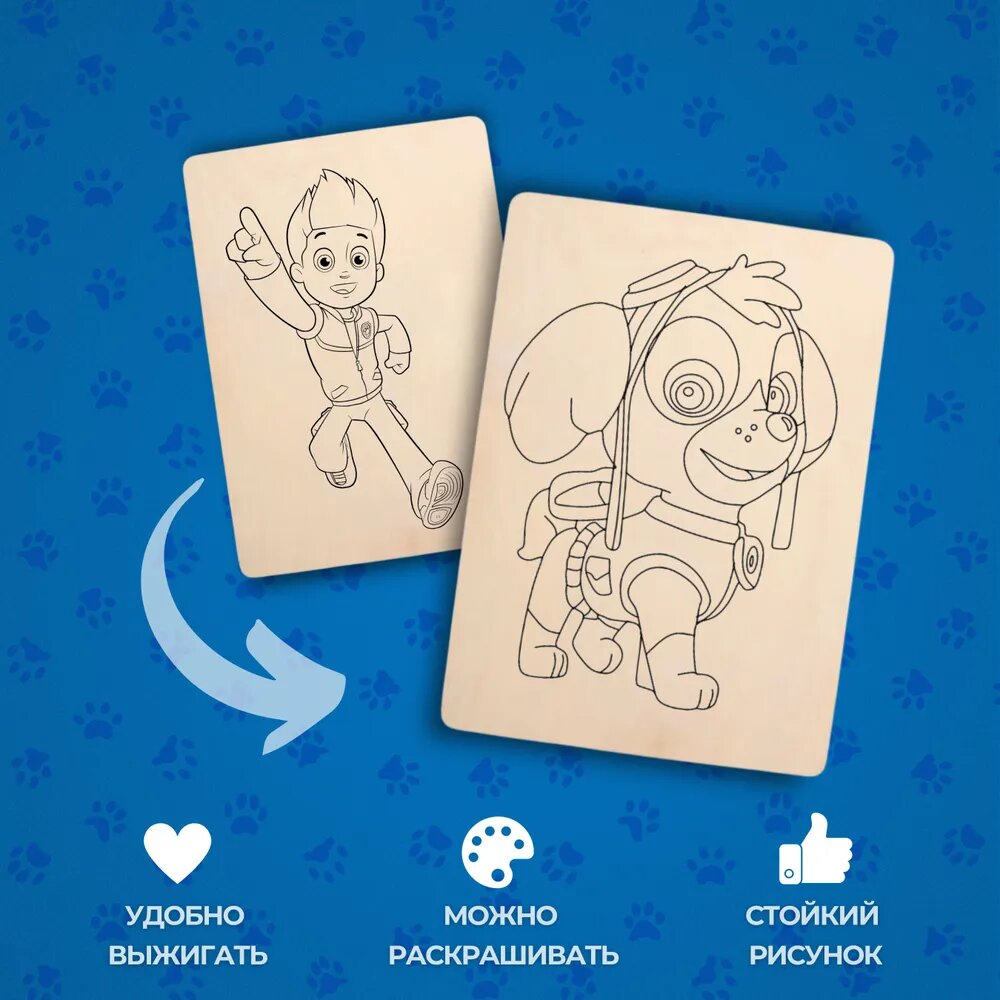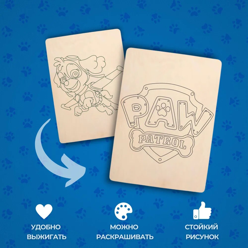 Купить Набор деревянных досок А5 для рисования и выжигания по дереву детский из фанеры с рисунком Щенячий патруль