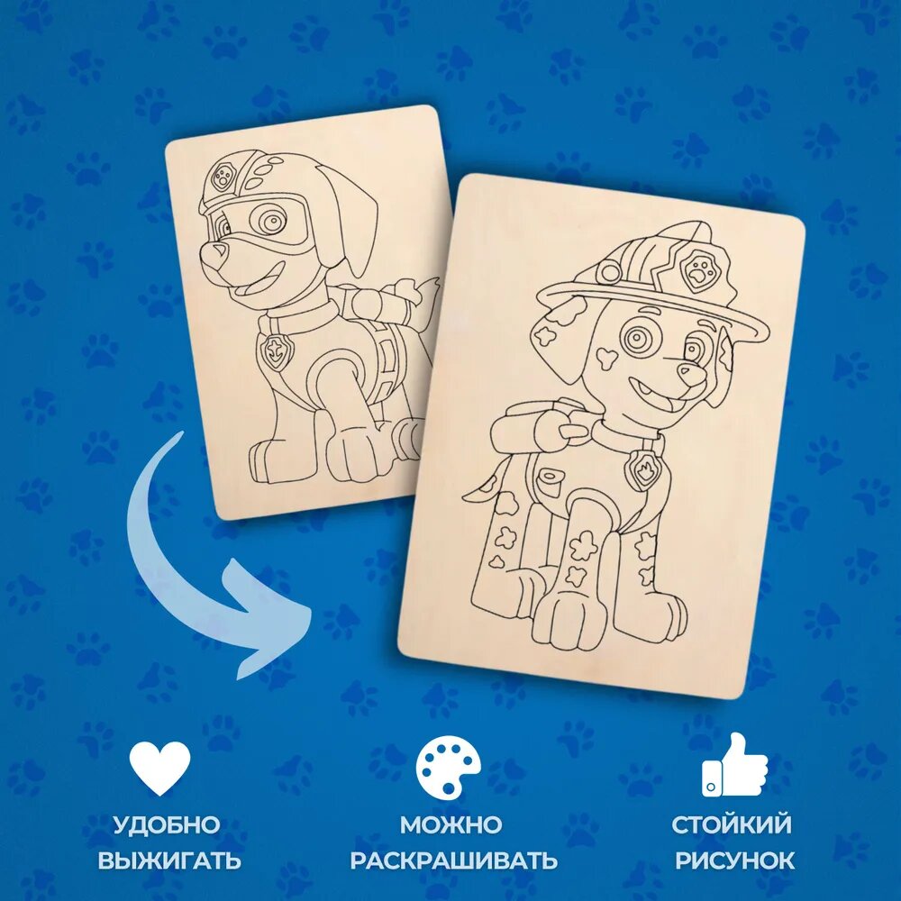 Набор деревянных досок А5 для рисования и выжигания по дереву детский из фанеры с рисунком Щенячий патруль интересное: