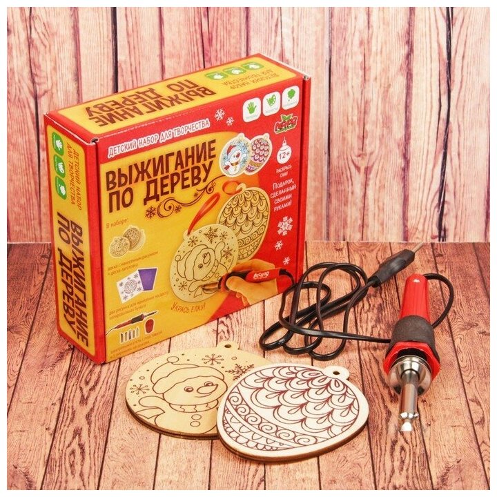 Набор для выжигания и росписи по дереву "Новый год! Ёлочные игрушки" интересное: