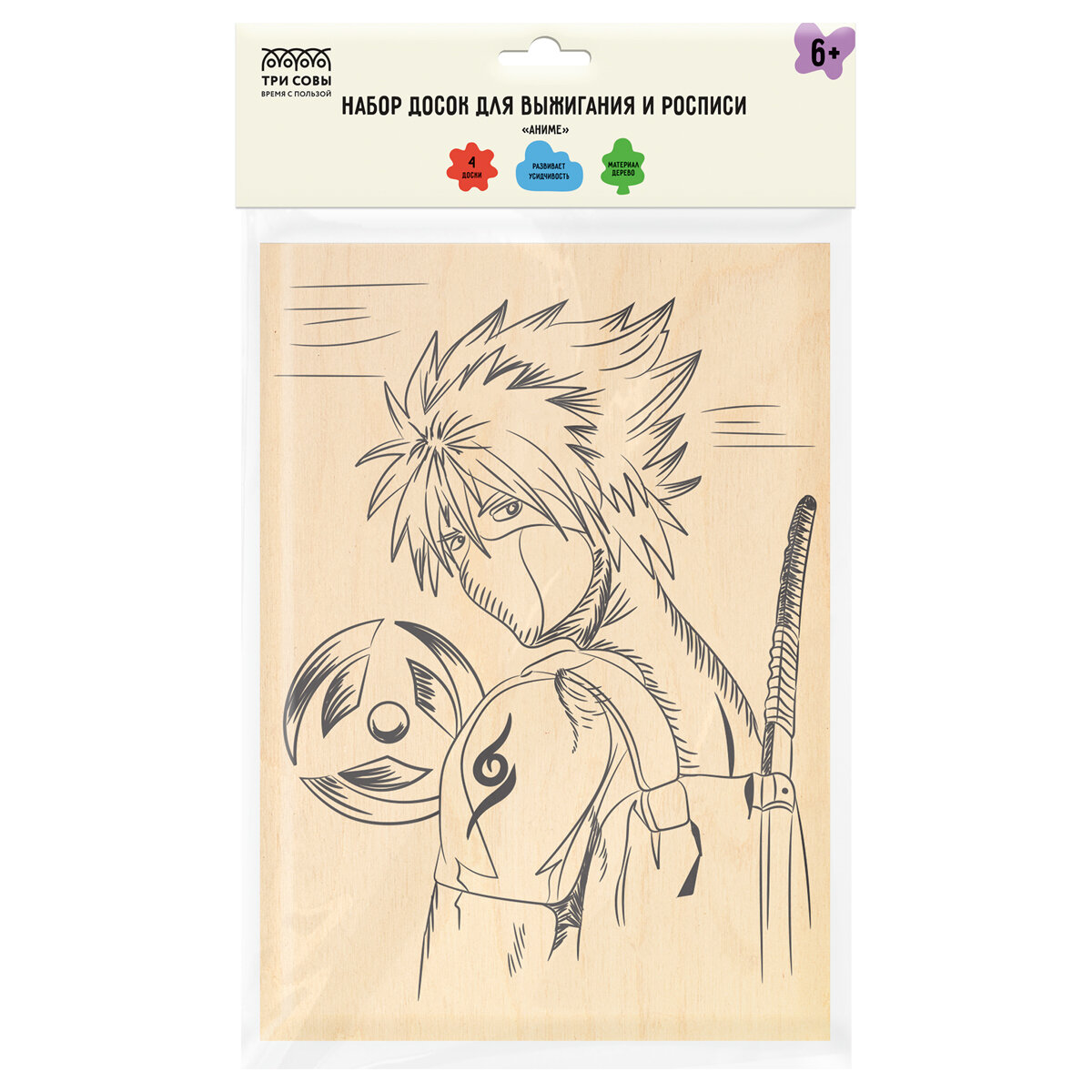 Купить Набор досок для выжигания и росписи по дереву ТРИ совы "Аниме", 4шт, 15*21см, пакет с европодвесом