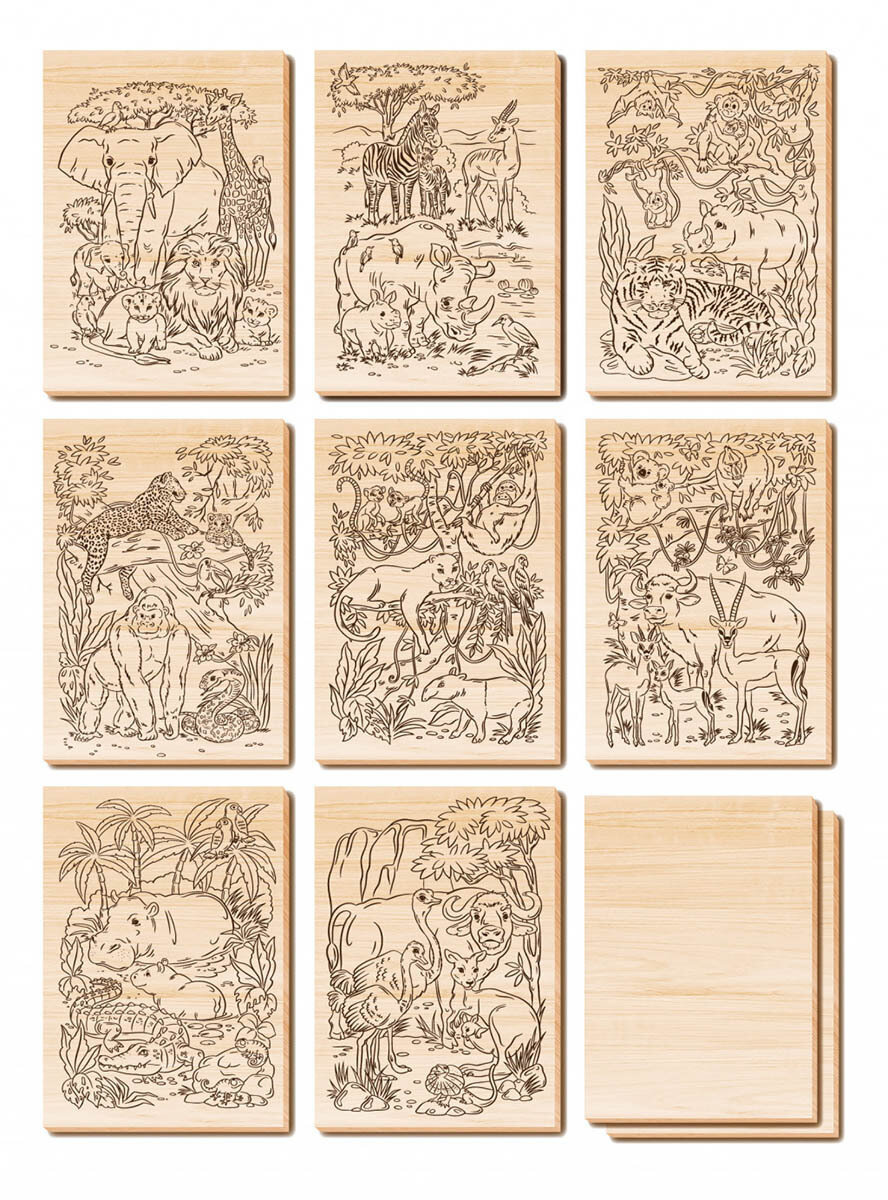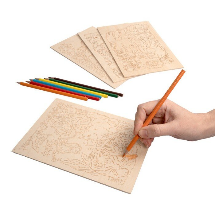 Купить Набор для творчества Выжигание. Набор досок для выжигания и росписи Звериное царство А5, 10 шт 04957