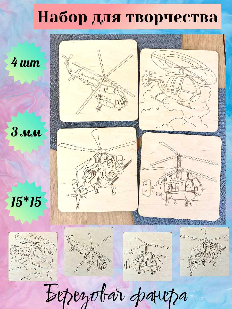 Набор досок (заготовок) для выжигания и рисования по дереву "Вертолеты", размер 15*15 см интересное: