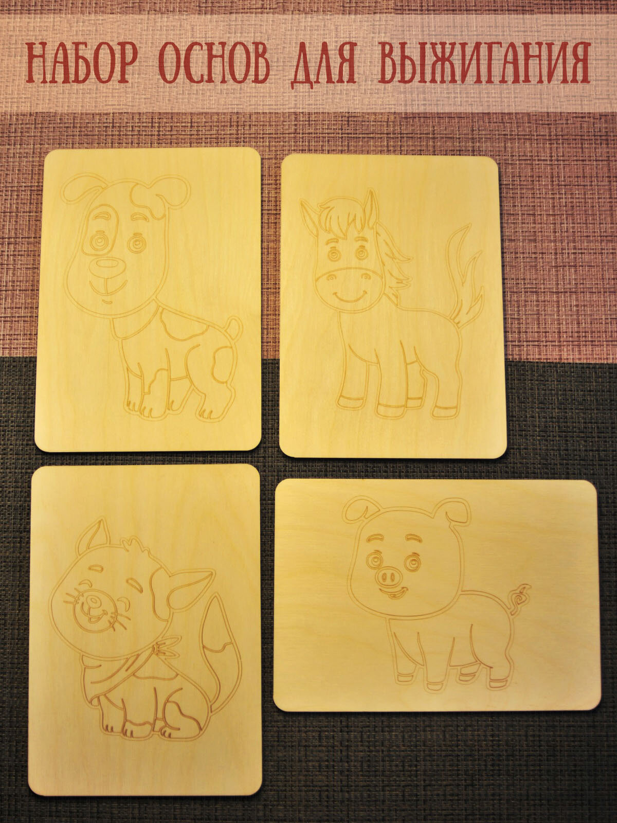 Купить Набор основ для выжигания по дереву, доска для рисования RiForm с рисунком "Домашние Животные", формат А5, 4шт, фанера 4мм