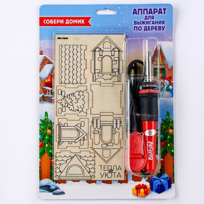 Купить Лесная мастерская Новогодний набор для выжигания по дереву «Собери домик»