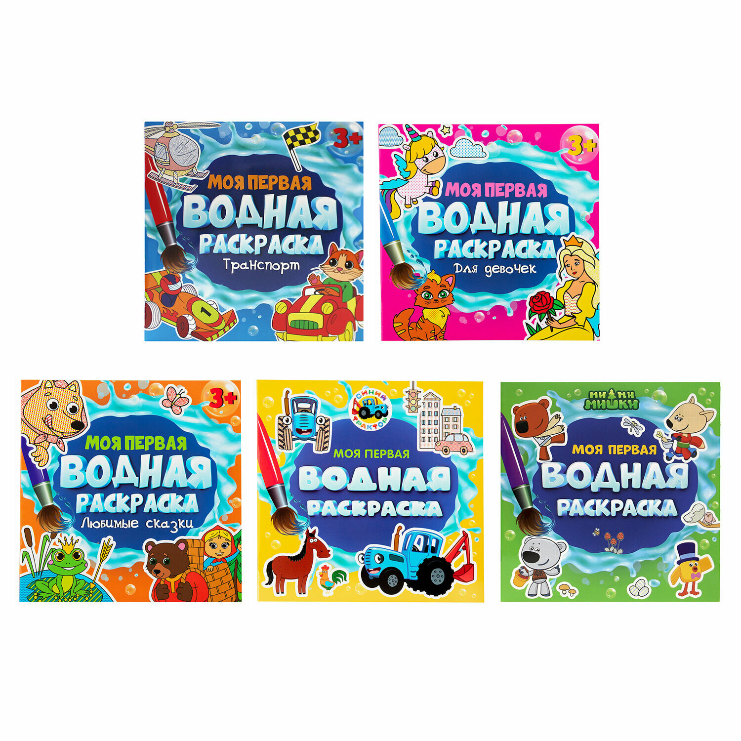 Раскраски детские водные многоразовые набор 5 штук для детей и малышей, 195х195 мм, 12 страниц, Prof-Press, 691094 интересное: