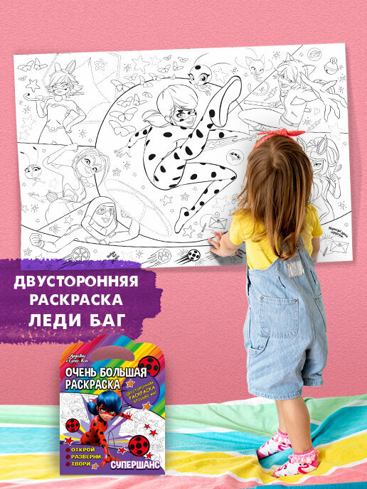 Двухсторонняя раскраска 97х68 см, Очень большая раскраска. Леди Баг. Супершанс интересное: