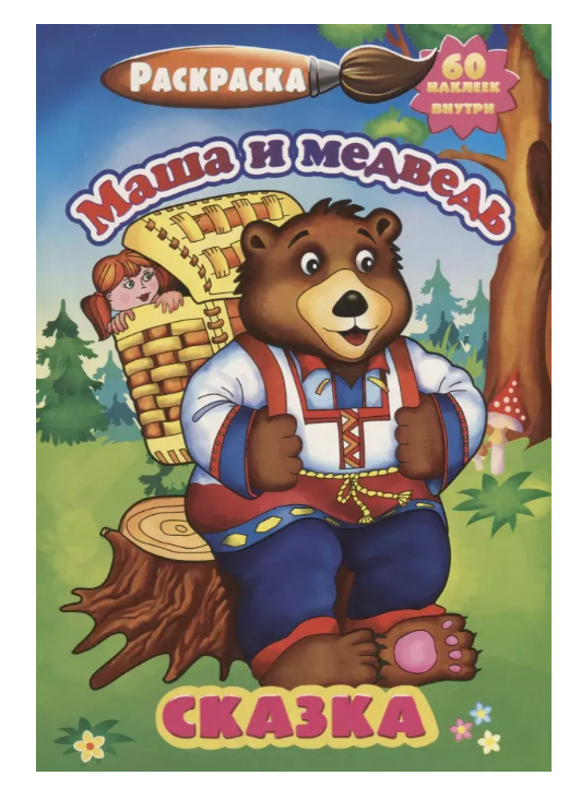 Раскраска Маша и медведь (60 накл.) (3+) (илл. Жураховская) (м) (РнА5-007) интересное:
