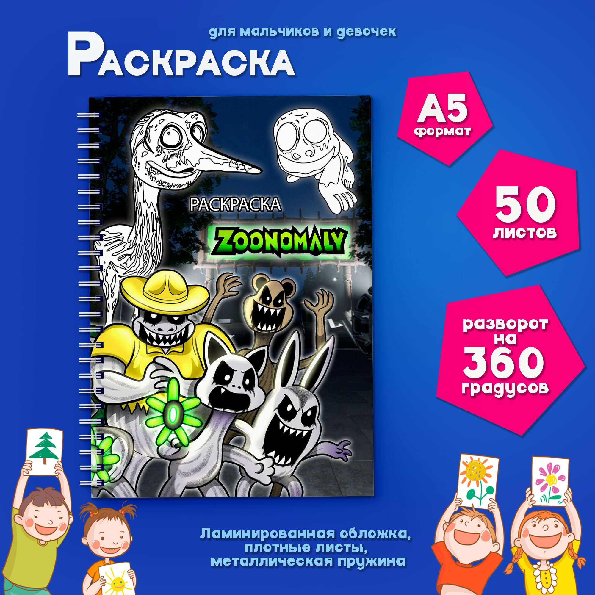Раскраска для детей "Зоономалия" (Zoonomaly) , формат А5, 50 стр. интересное: