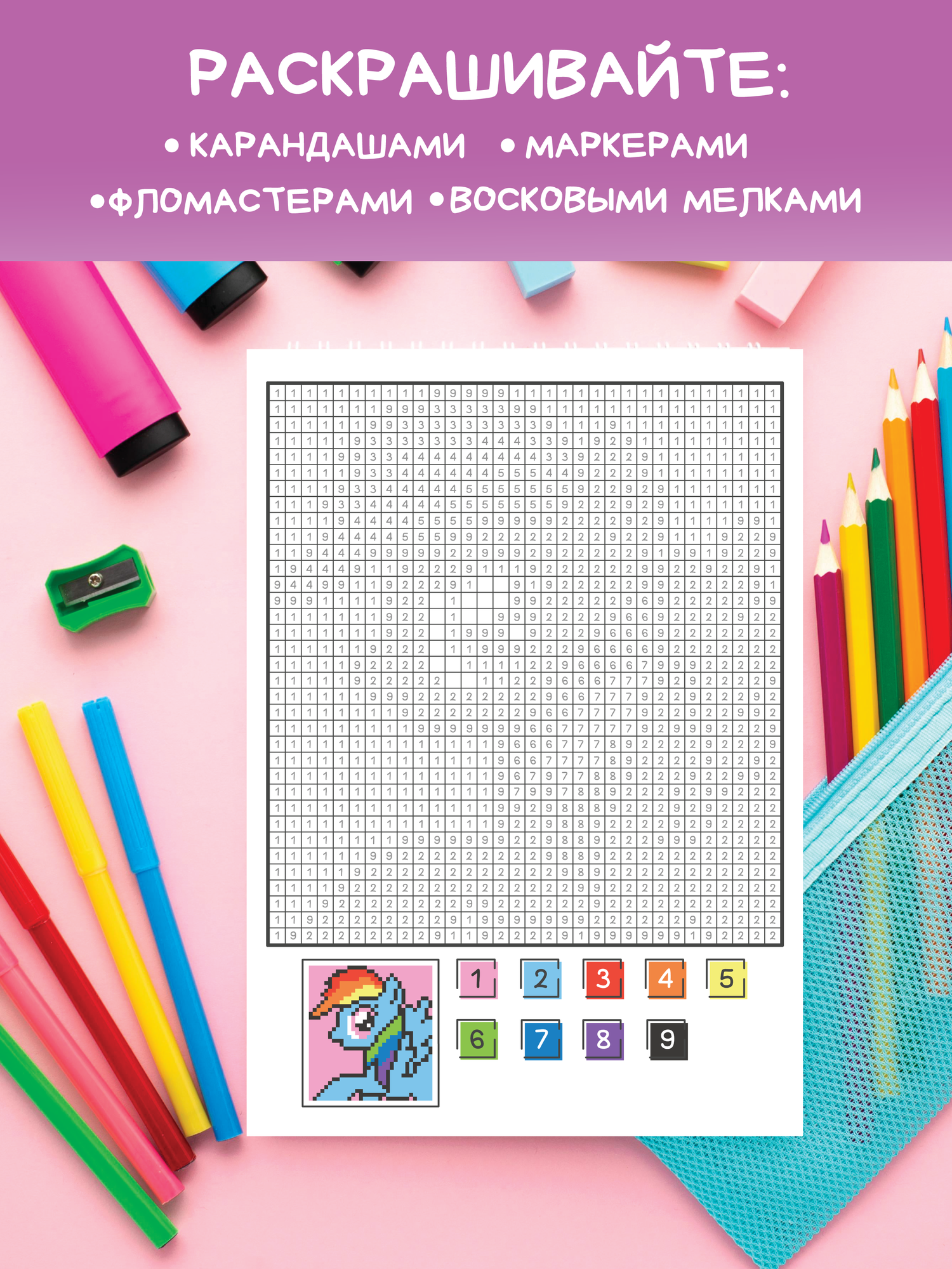Раскраска пиксельная по клеточкам и номерам для девочек. Антистресс-раскраски для детей интересное: