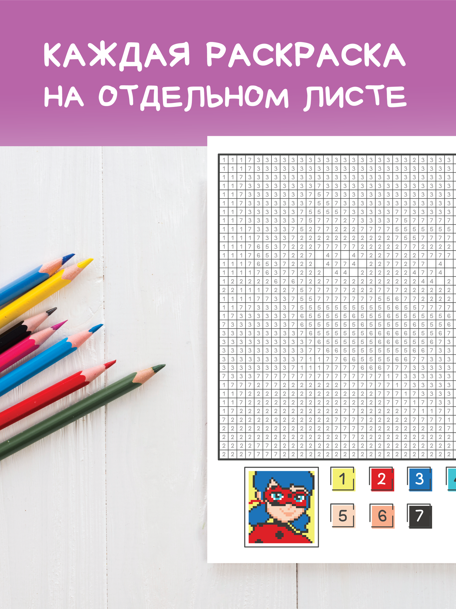Раскраска пиксельная по клеточкам и номерам для мальчиков. Набор раскрасок антистресс.