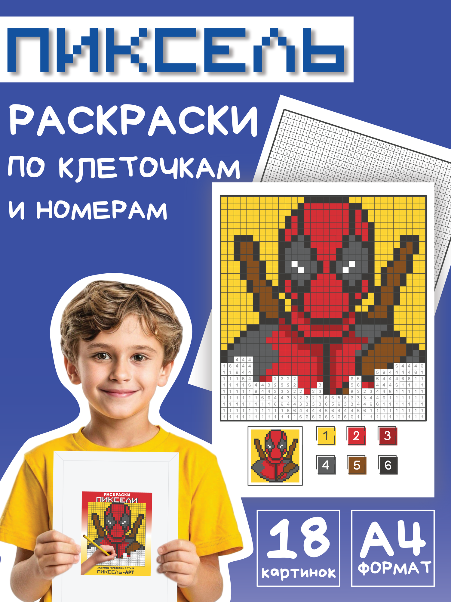 Раскраска пиксельная по клеточкам и номерам для мальчиков. Набор раскрасок антистресс. интересное: