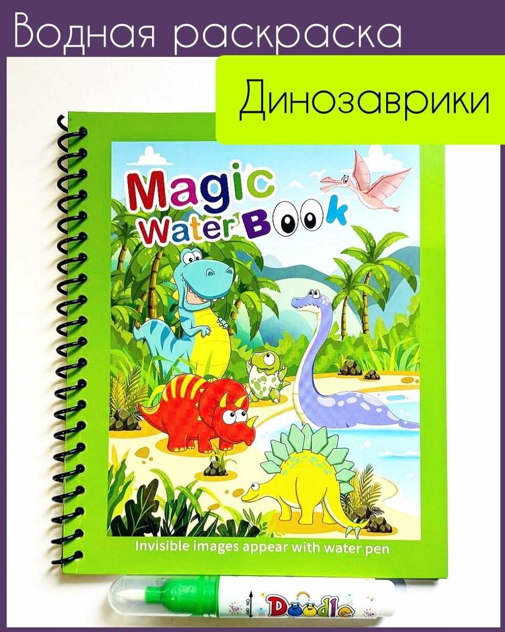 Купить Многоразовая водная раскраска с маркером Magic Water Book Динозаврики