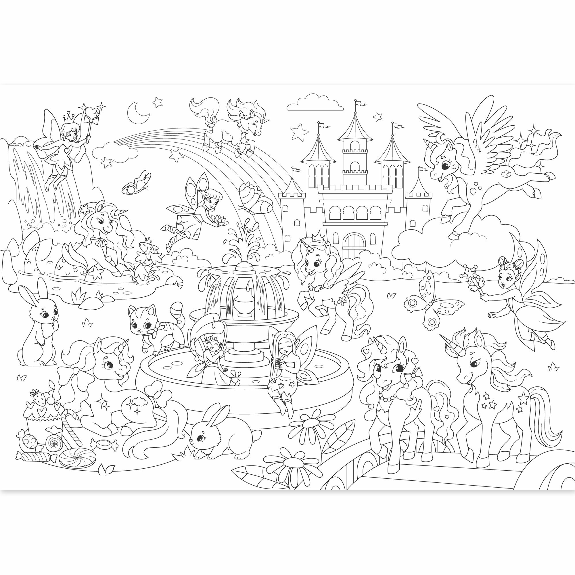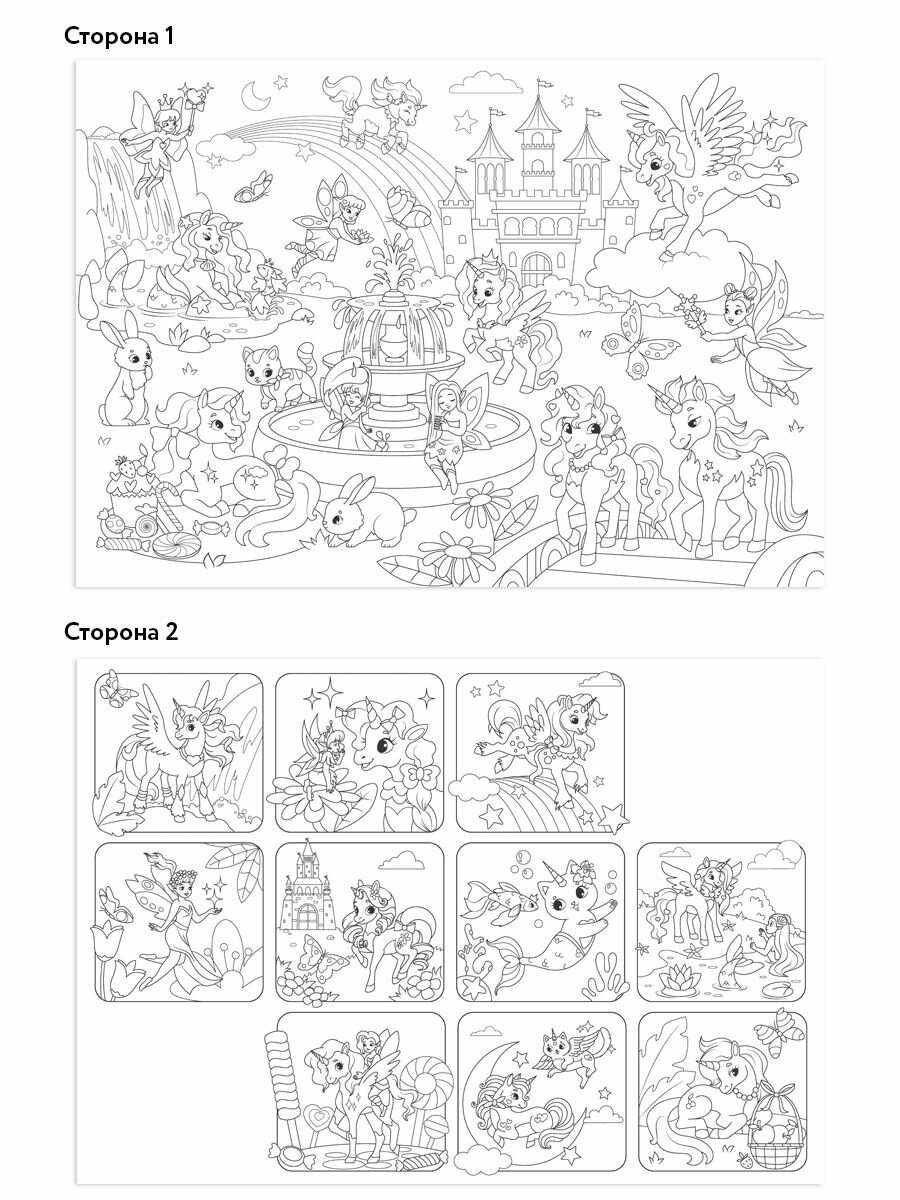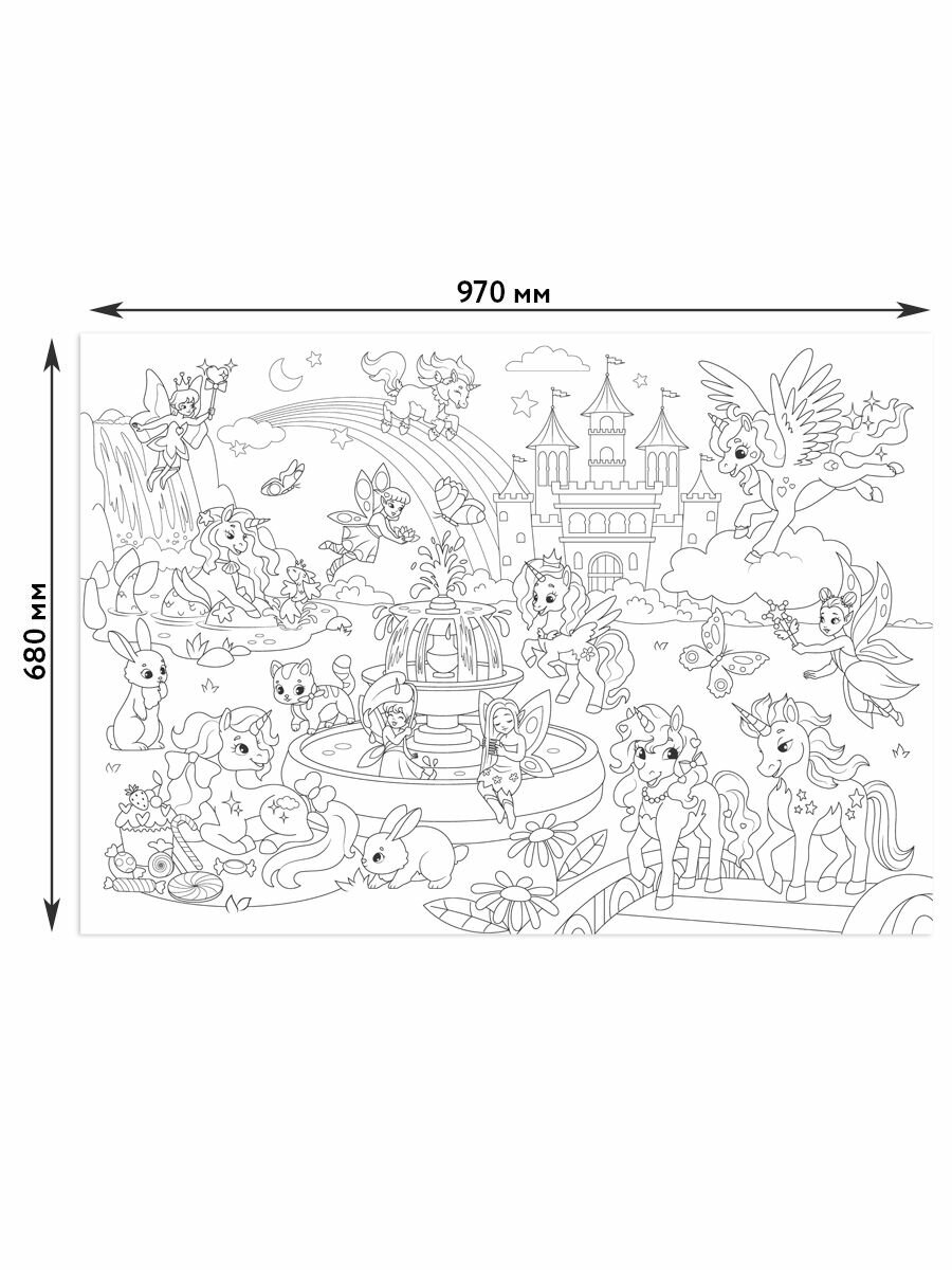 Купить Очень большая раскраска ND Play. Единороги и единорожки, 97 х 68 см, двухсторонняя
