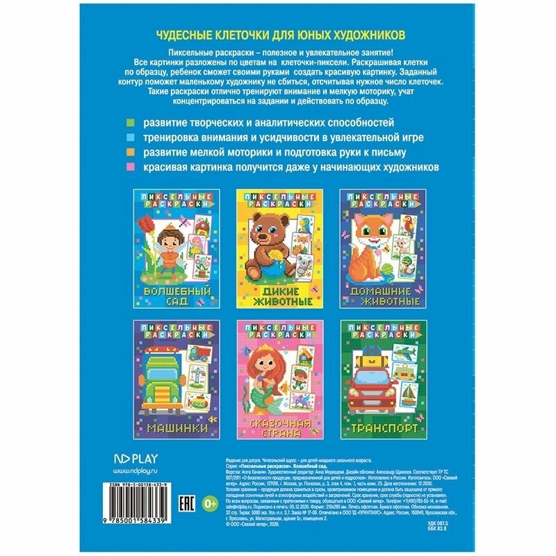 Пиксельная раскраска ND Play 210х290 мм, "Волшебный сад", 32 страниц (978-5-00158-433-9) интересное: