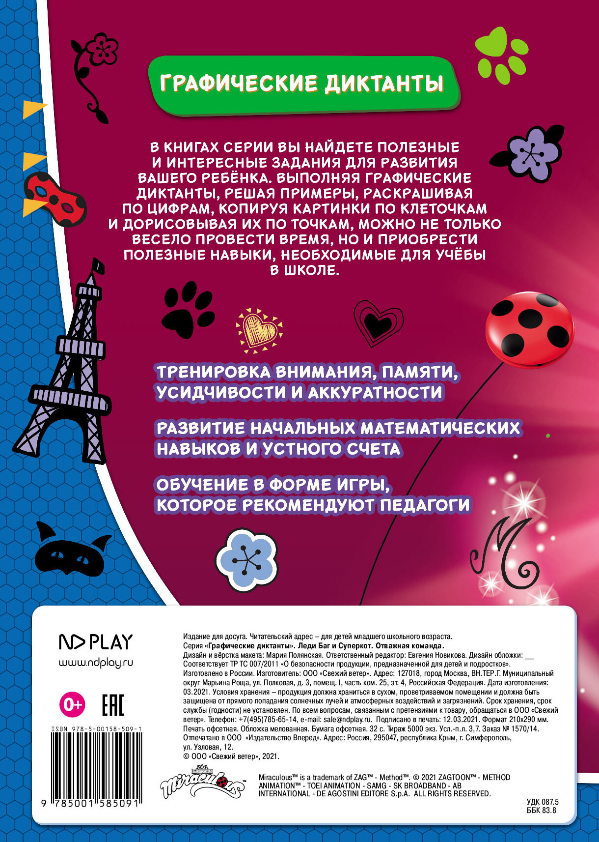 Графические диктанты, Раскраски для детей, Развивающие книги, Леди Баг и Суперкот. Отважная команда интересное: