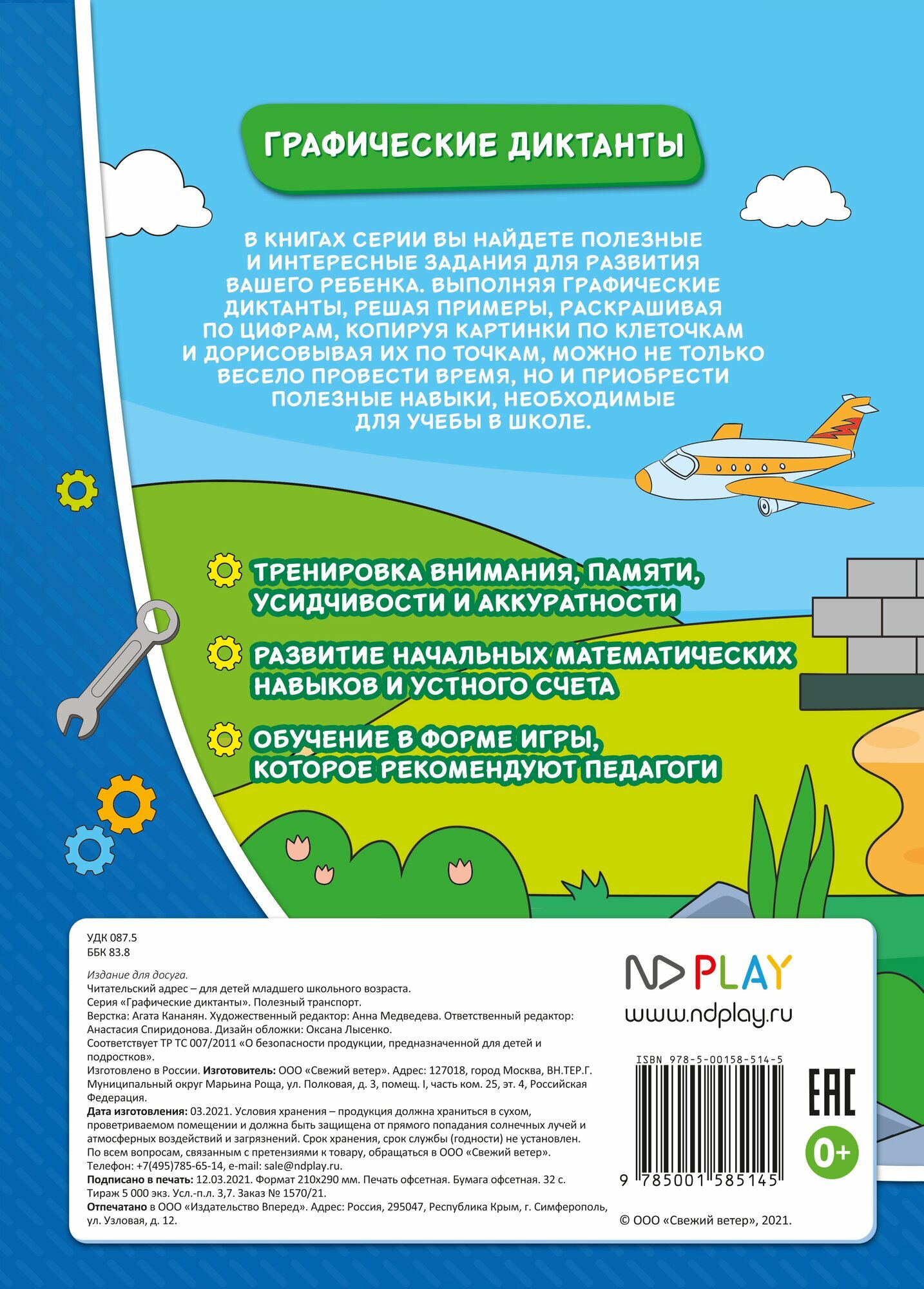 Купить Графические диктанты, Раскраски для детей, Развивающие книги, Полезный транспорт