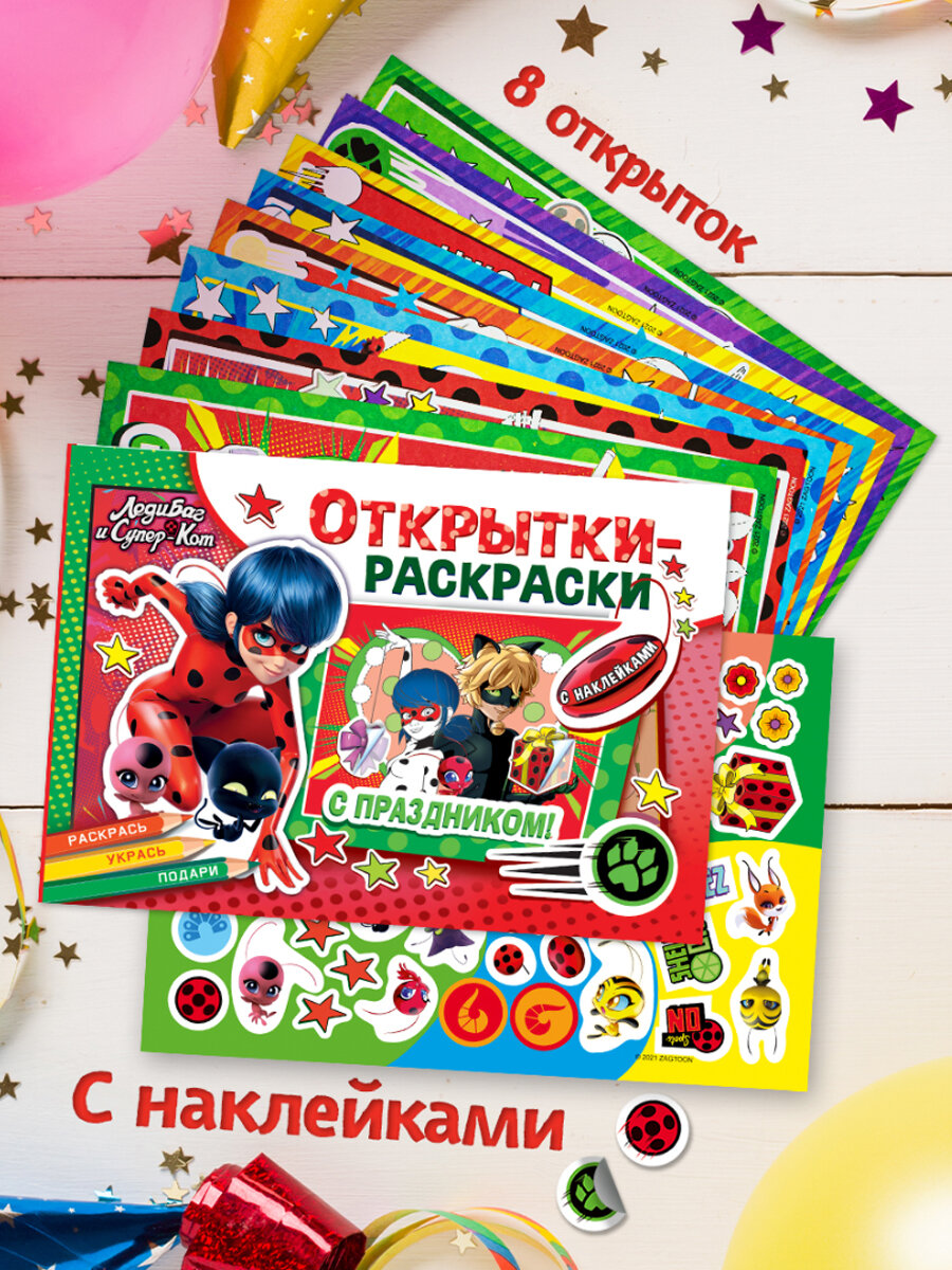 Купить Открытки-раскраски с наклейками. Леди Баг и Супер-Кот. Тайны Парижа
