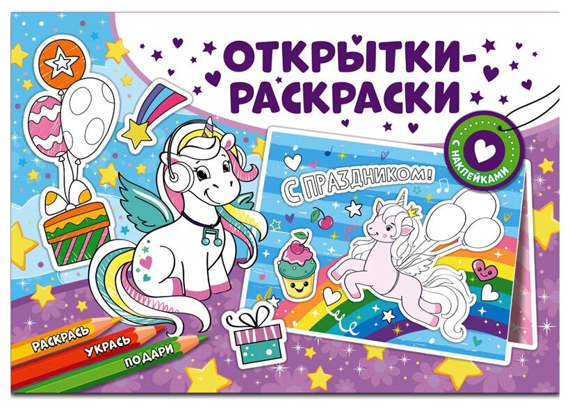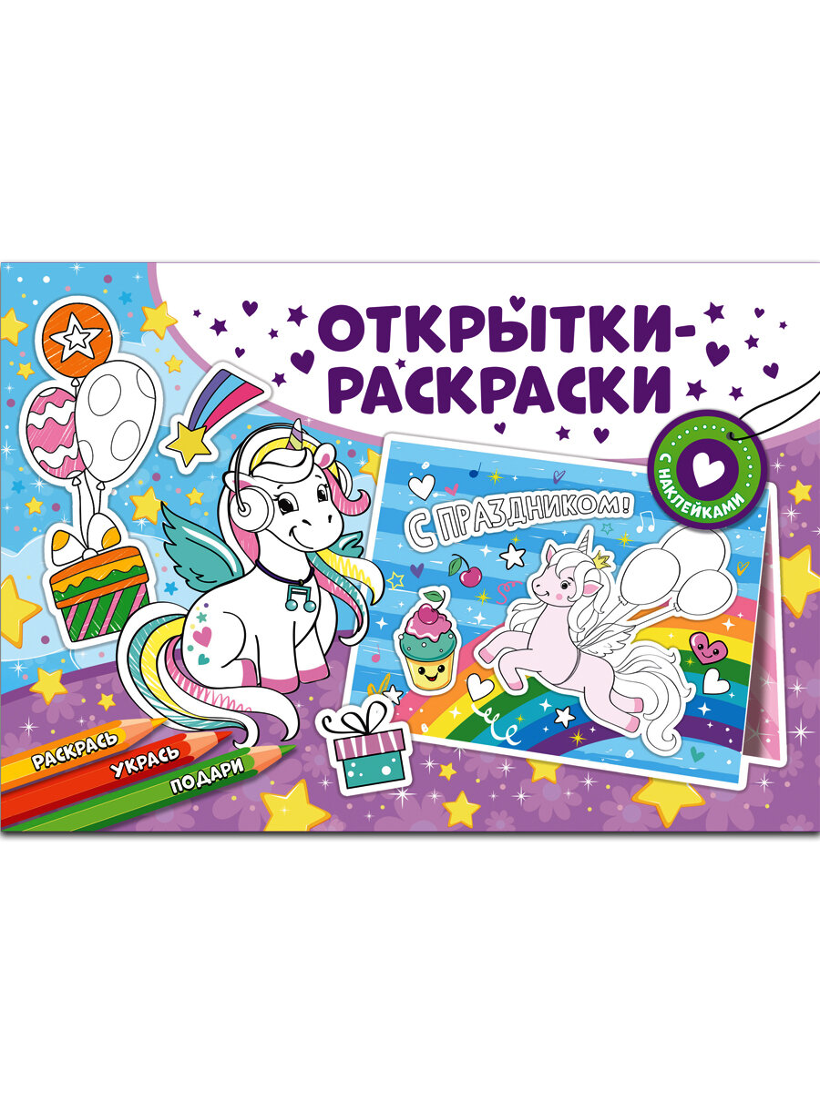 Купить Подарок своими руками, Открытки-раскраски с наклейками. Чудесные единороги