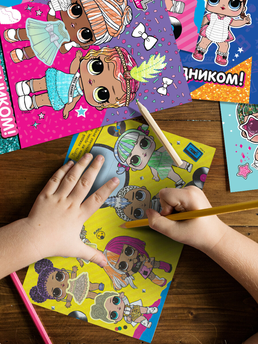 СохранитьПодарок своими руками, Открытки-раскраски с наклейками. L.O.L. Яркий праздник интересное: