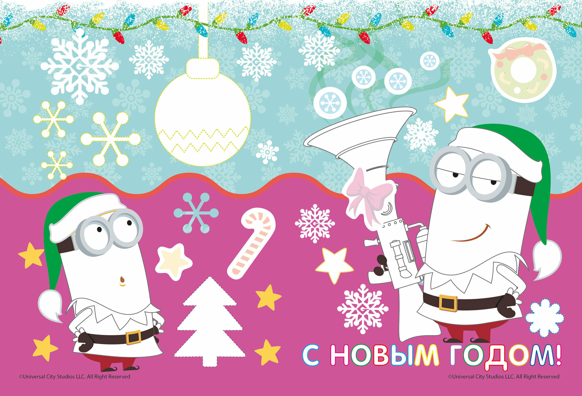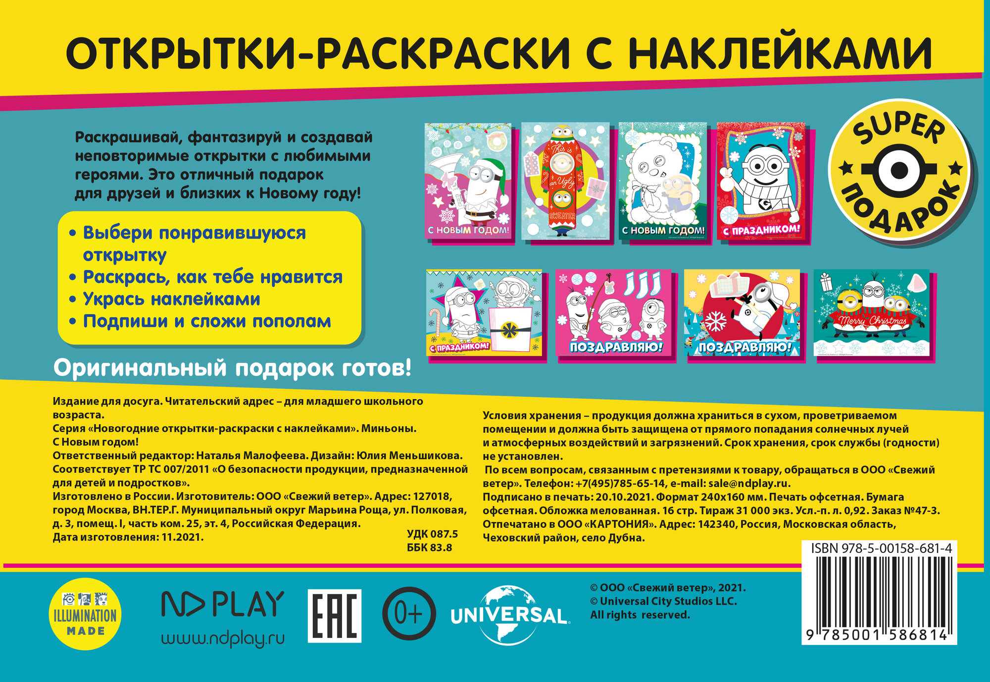 Купить Новогодние открытки-раскраски с наклейками. Миньоны. С Новым годом!