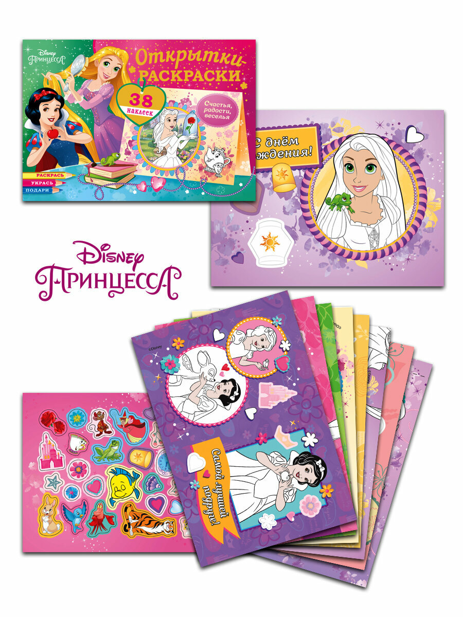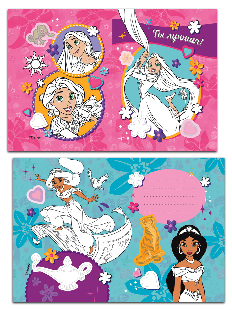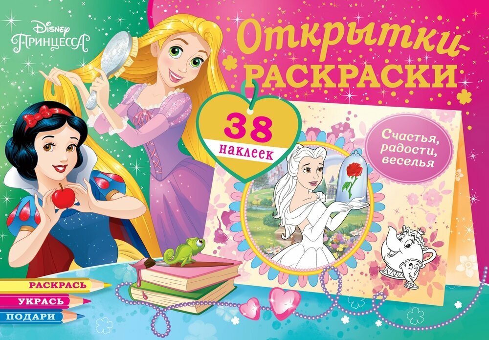 Открытки-раскраски с наклейками. Диснеевские принцессы. Верь в чудеса интересное: