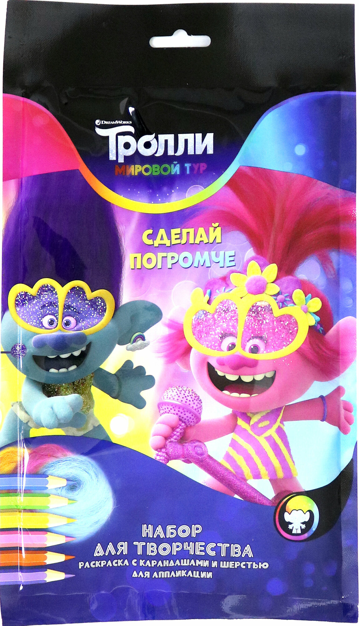 Купить Тролли: Мировой тур. Набор для творчества «Веселая раскраска с карандашами и шерстью для аппликации». Сделай погромче. ND Play