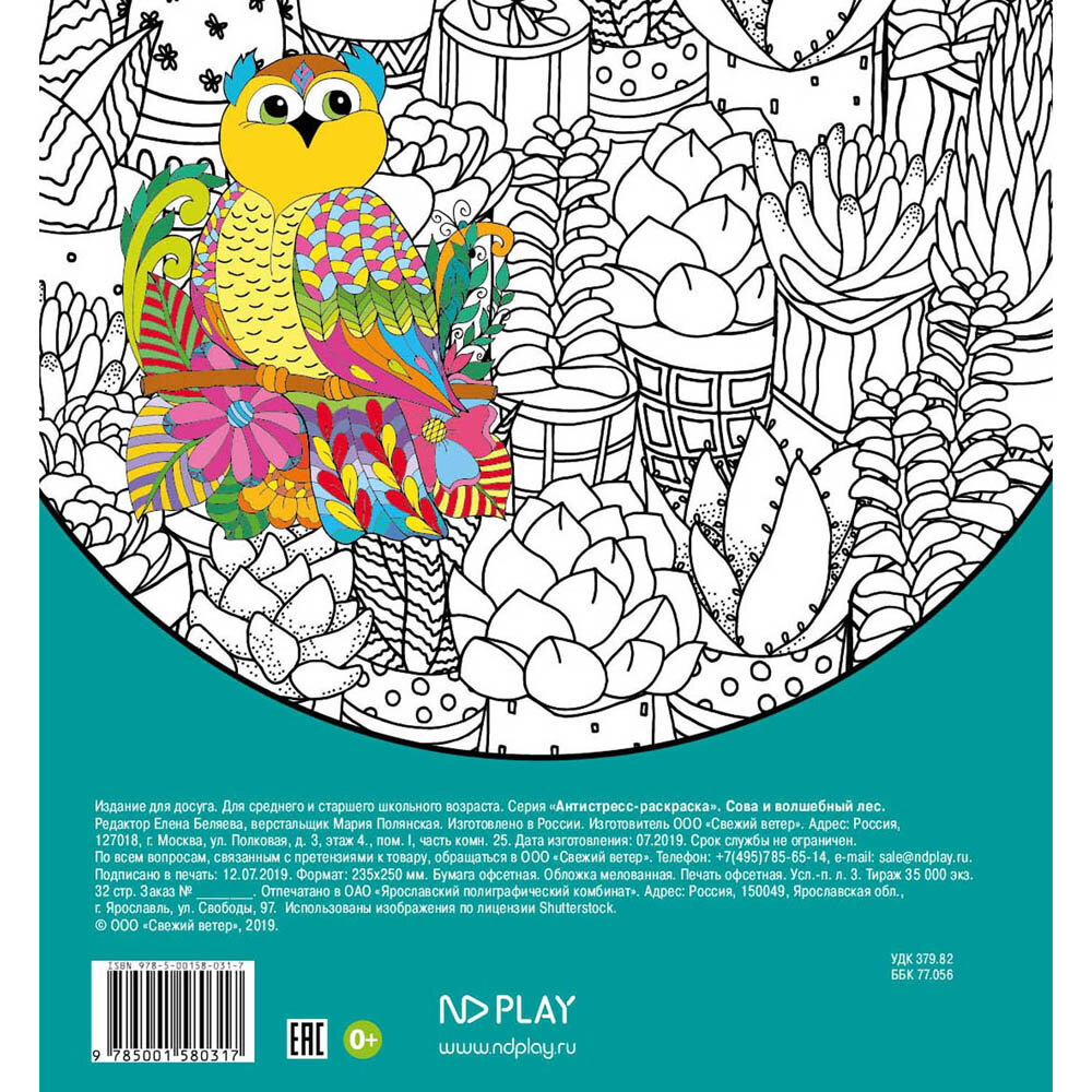 Раскр(NDPlay) АнтистрессРаскр Сова и волшебный лес интересное: