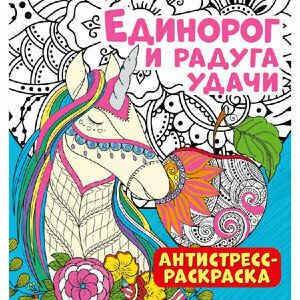 Антистресс-раскраска, Раскраска для детей. Единорог и радуга удачи