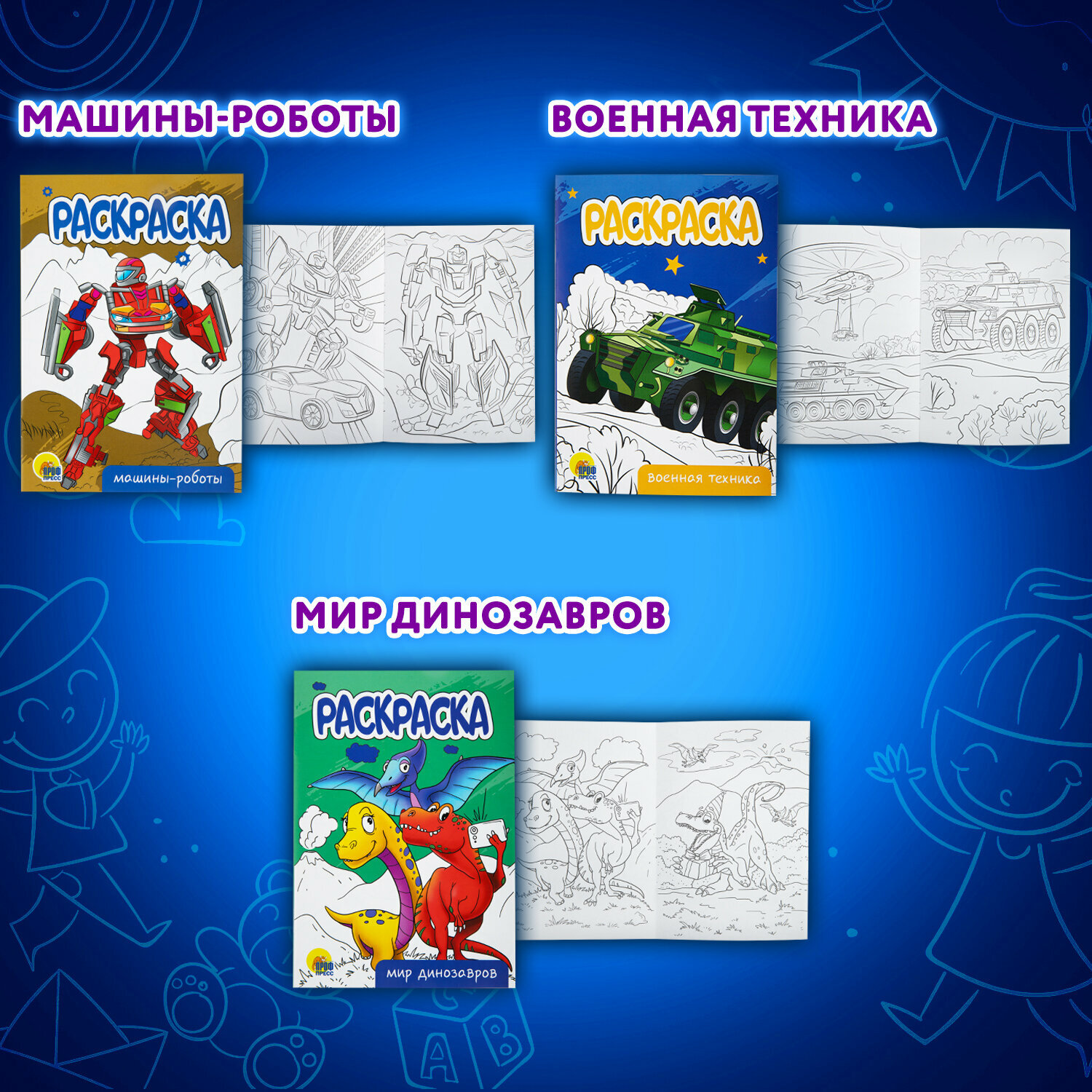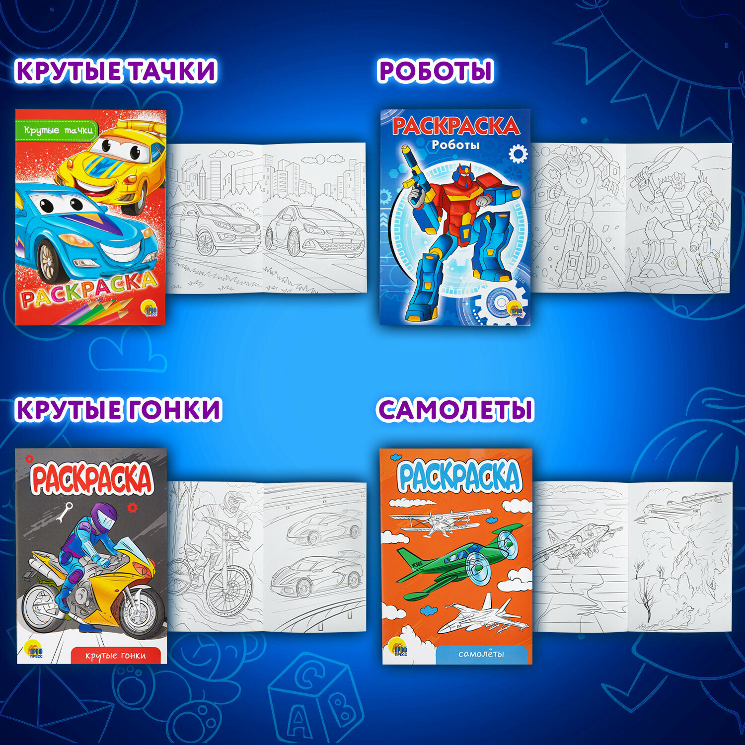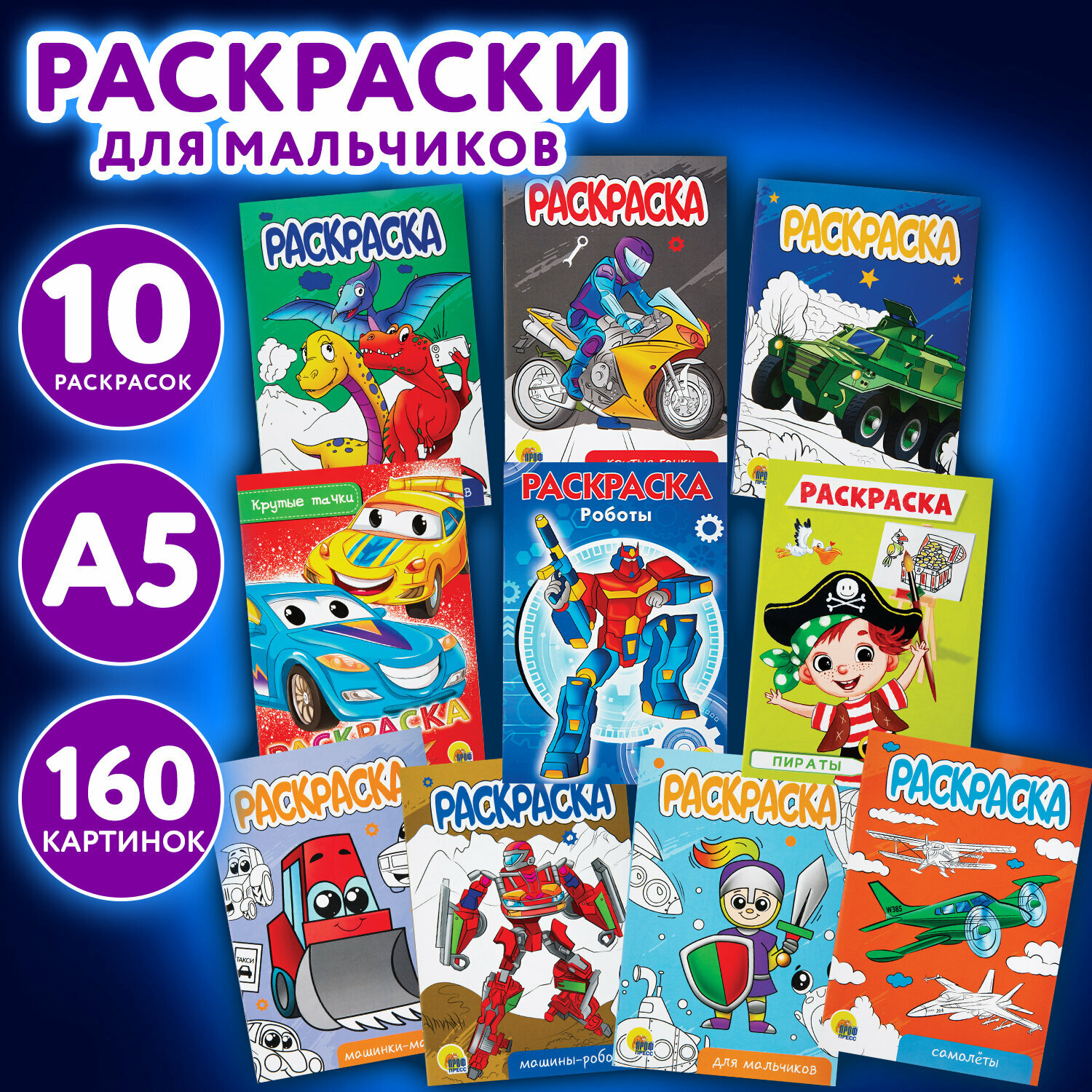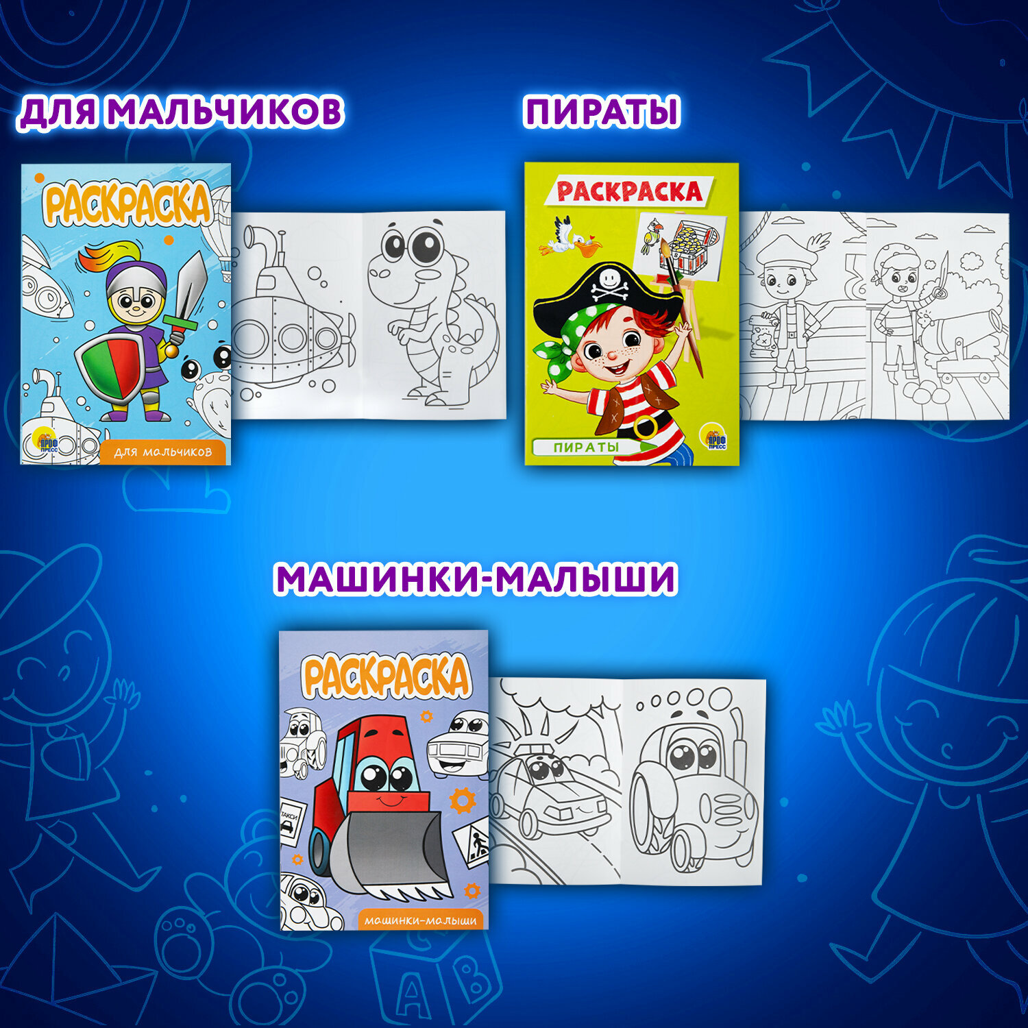 Купить Набор детских раскрасок Для мальчиков, А5, 140х200 мм, 10 штук, 16 страниц, ПП, 691078