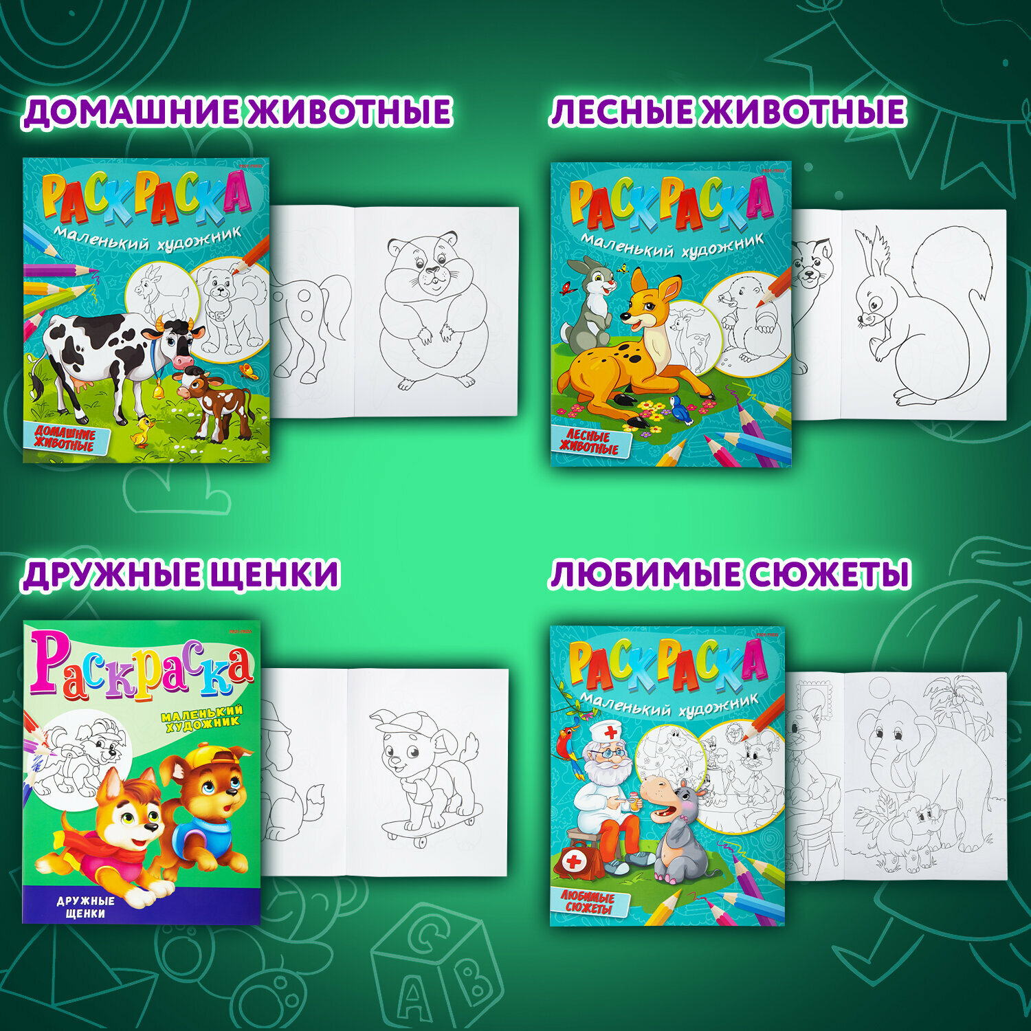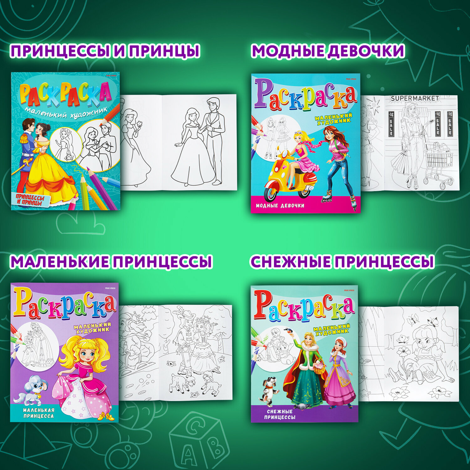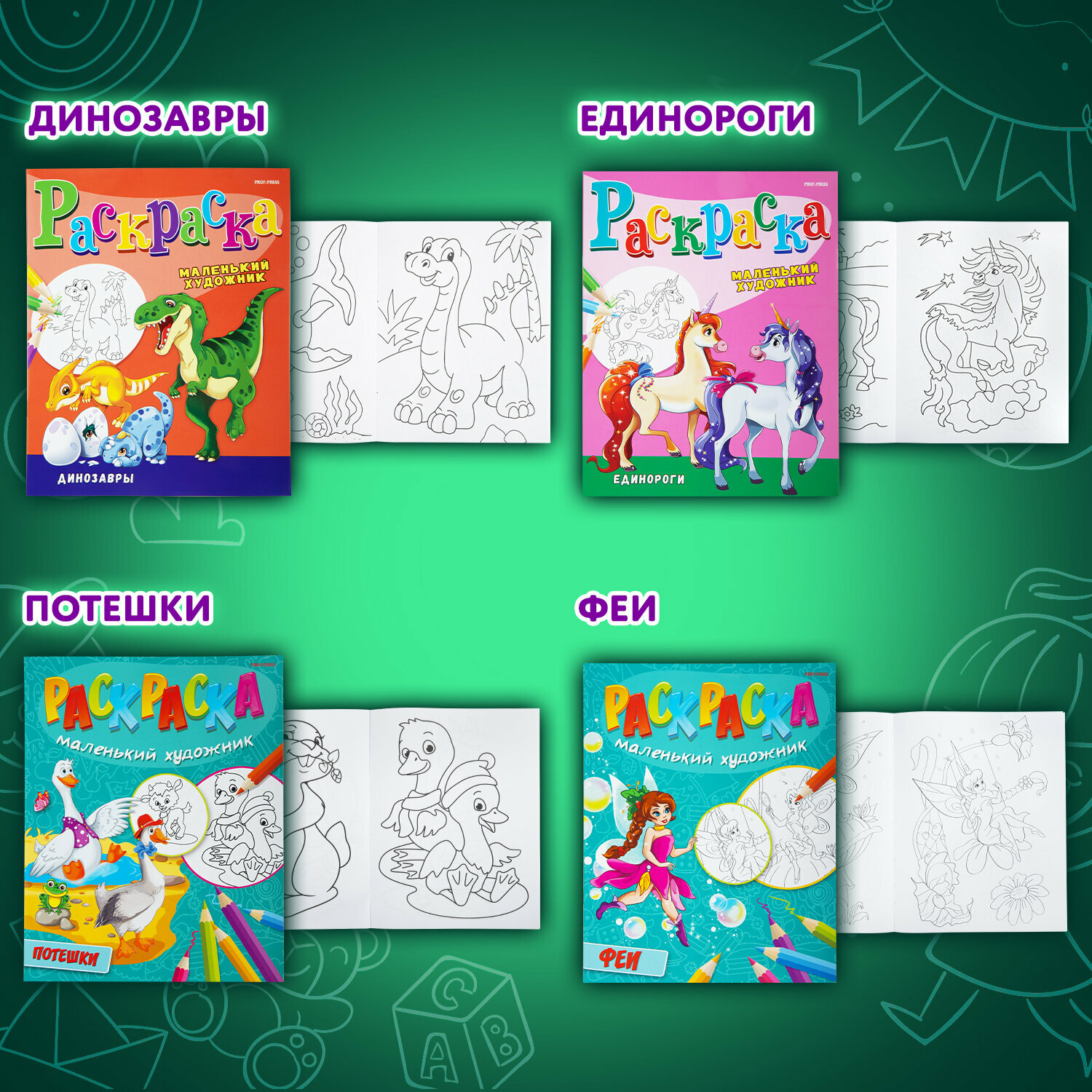 Набор детских раскрасок для девочек и мальчиков Маленький художник, А4, 195х250 мм, 15 штук, 16 страниц, ПП, 691076 интересное: