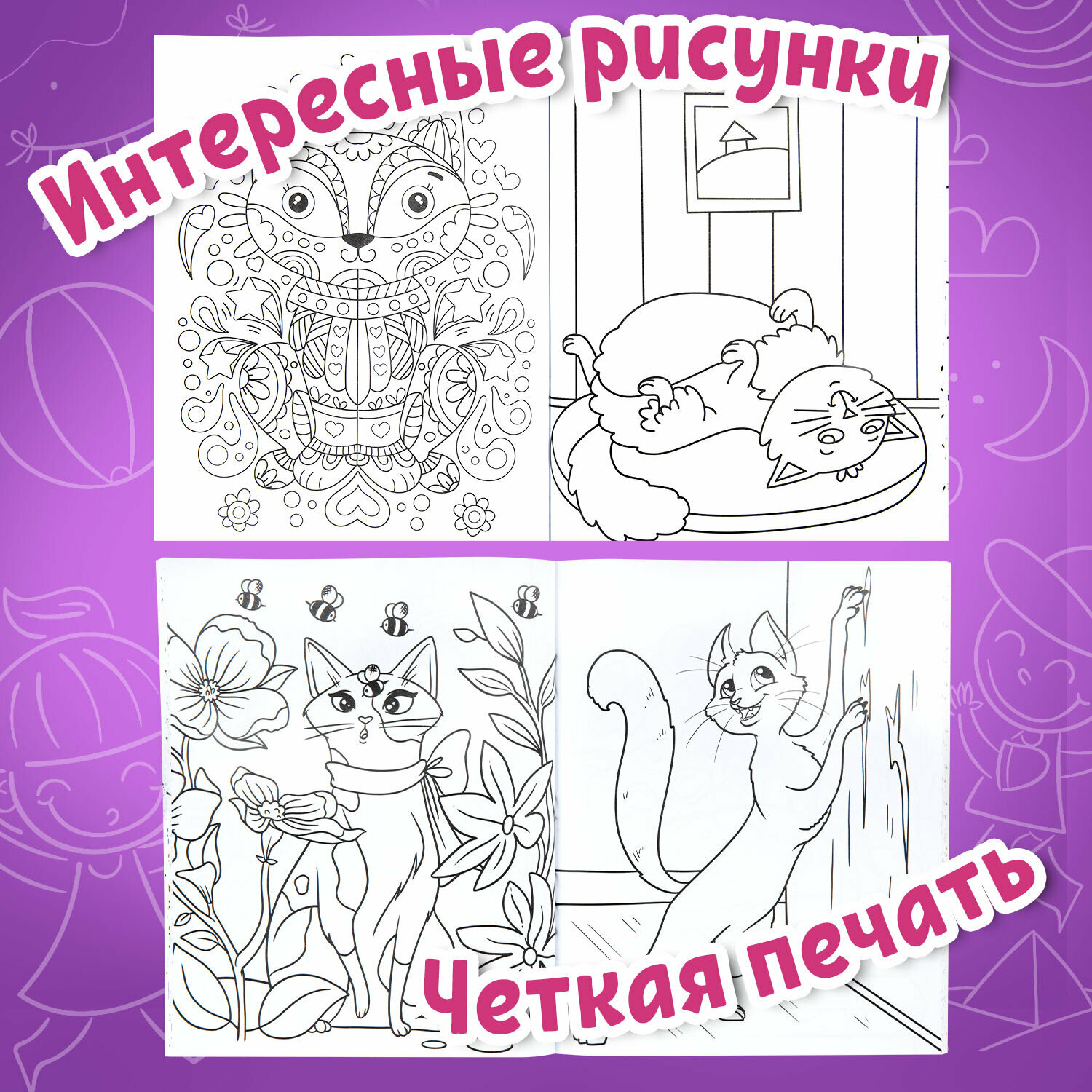 Детская раскраска для девочек Котята, 242х300 мм, 80 страниц, ПП, 691081 интересное: