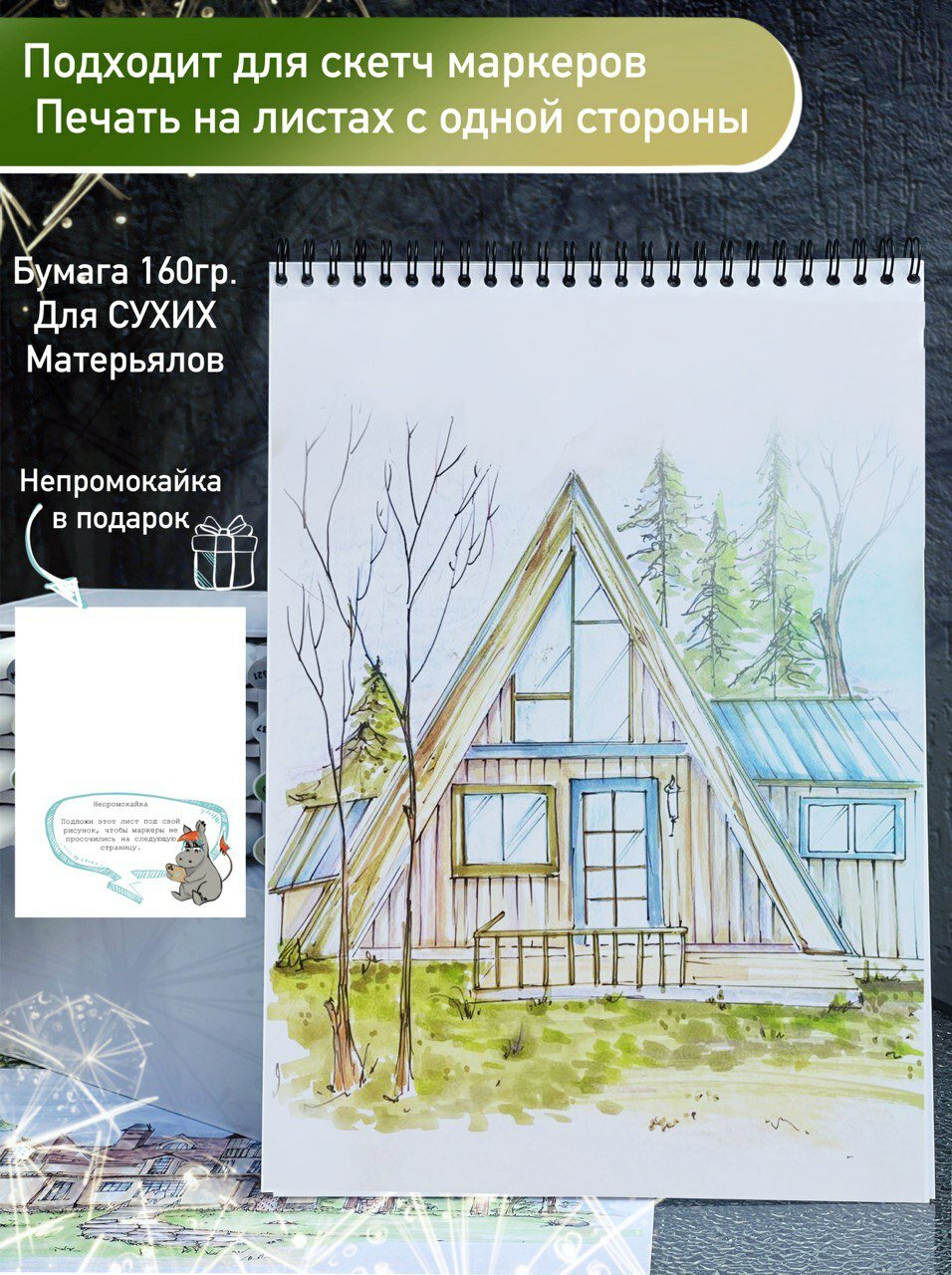 Раскраска, альбом для рисования "Дома и деревья", на пружине, 20 листов