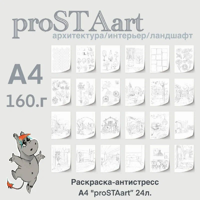 Раскраска proSTAart, антистресс, скетчбук 24 листа на пружине