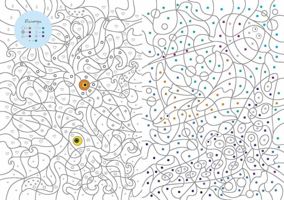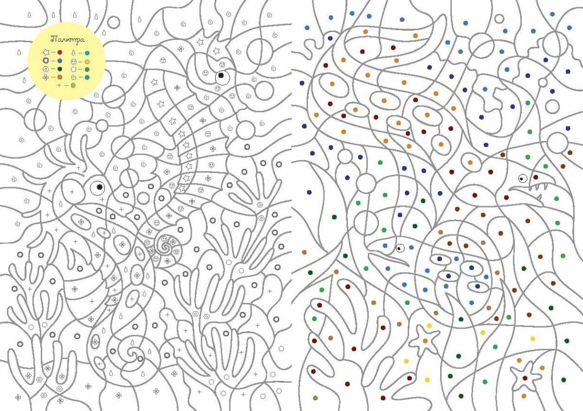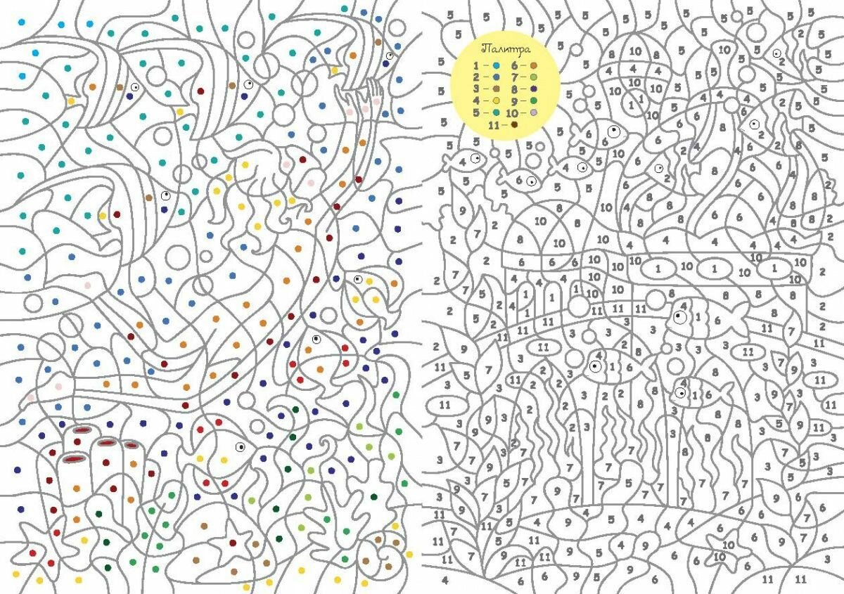 Подводный мир. Цвета, номера, символы. Раскраска для детей от 3 лет интересное: