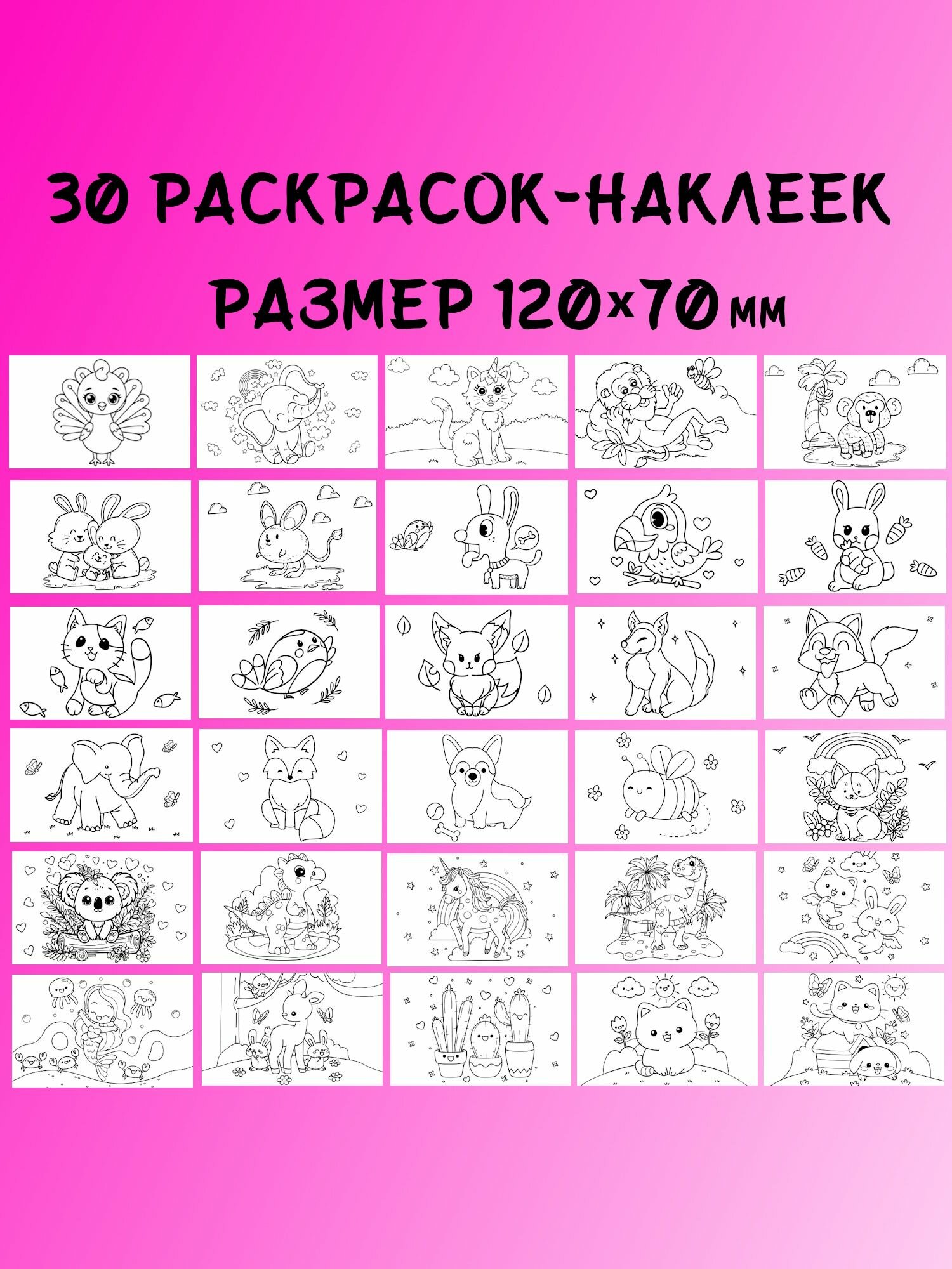 Раскраска Животные. Набор наклеек-раскрасок 30 шт. интересное: