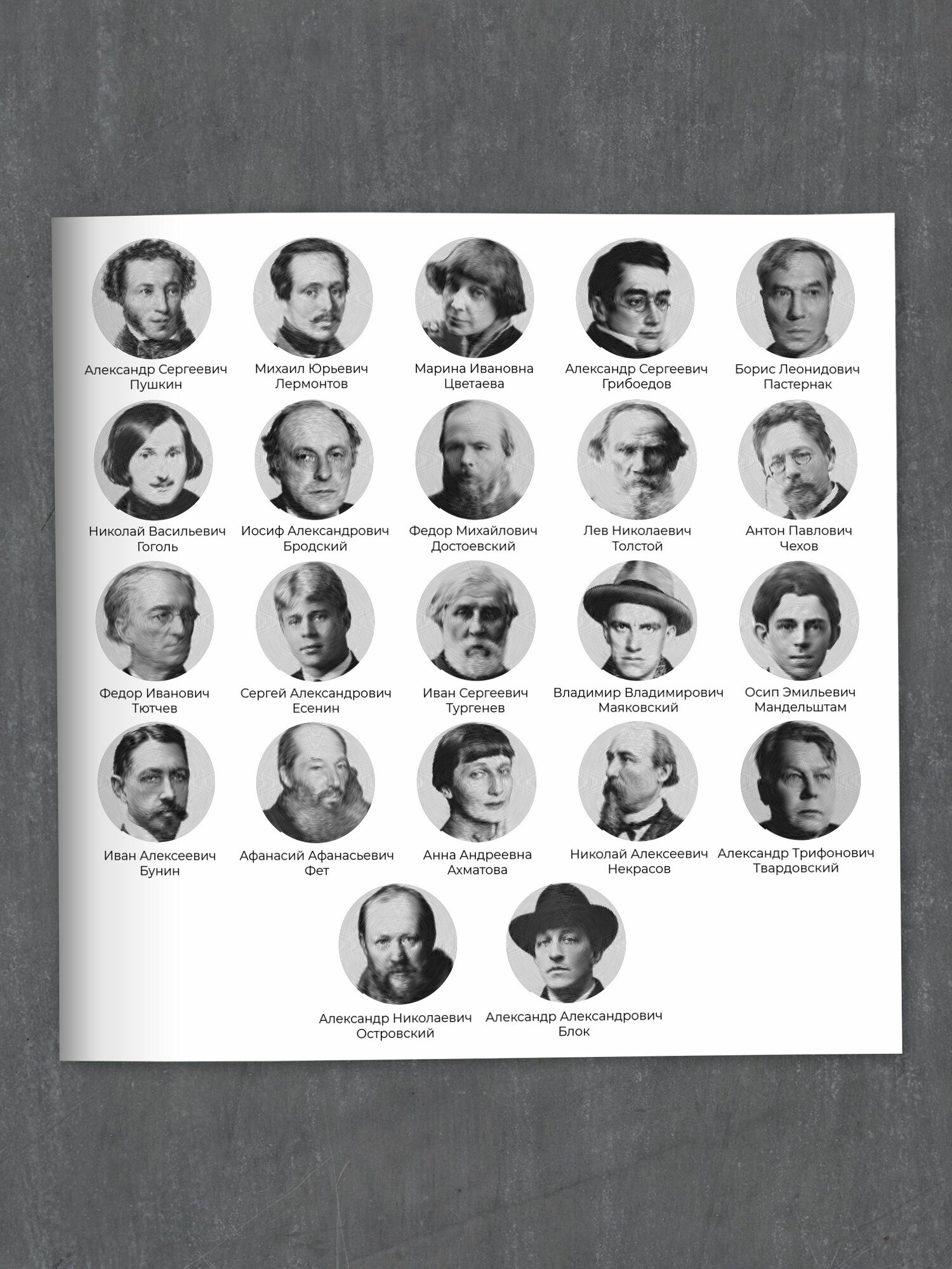 Спиральная раскраска антистресс для взрослых русские Писатели и Поэты интересное: