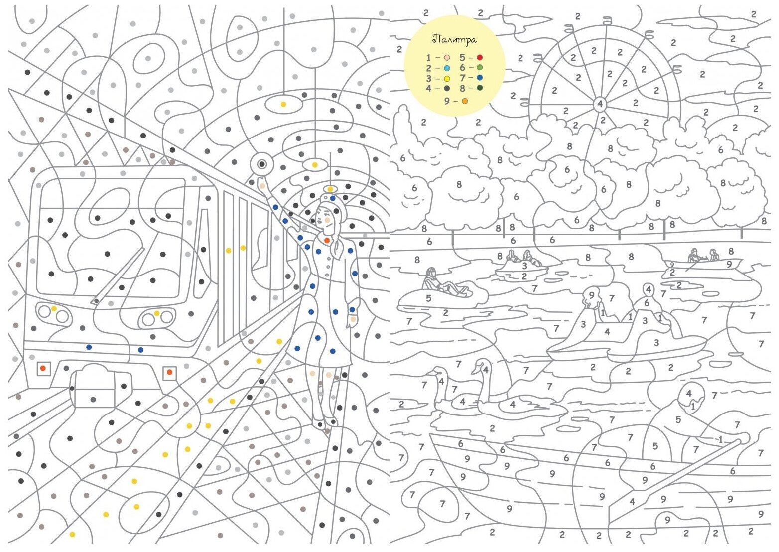Большой город. Цвета, номера, символы. Раскраска для детей от 3 лет интересное: