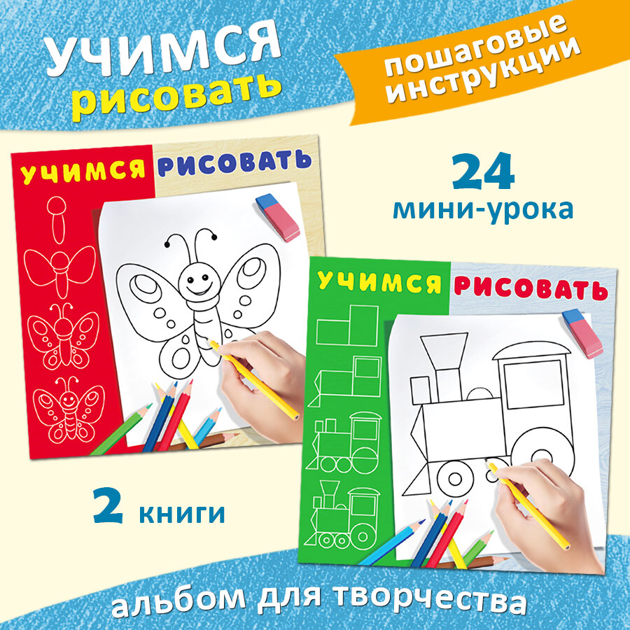Купить Раскраски для детей Издательство Фламинго Учимся рисовать Комплект из 2 книг: Бабочка, Паровозик