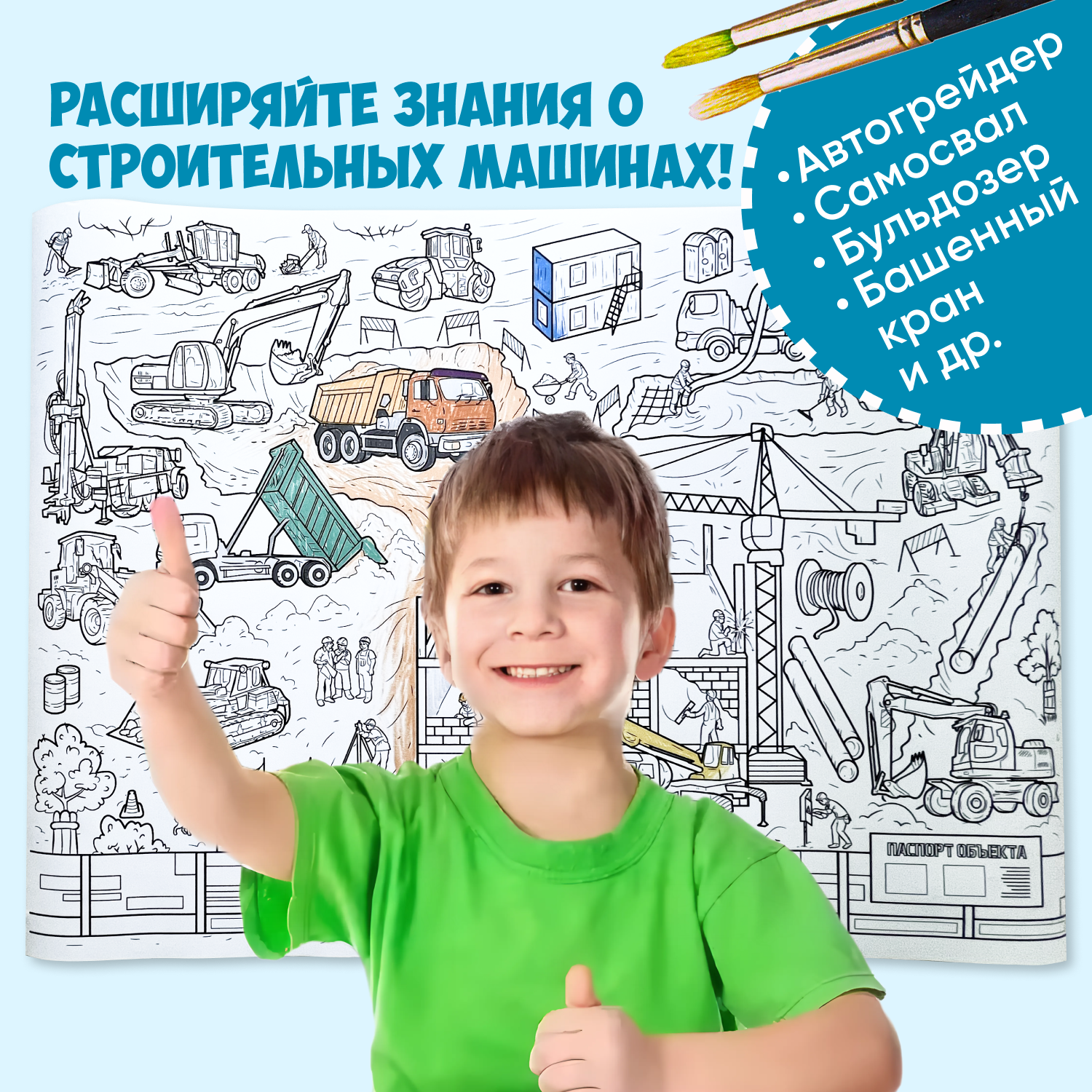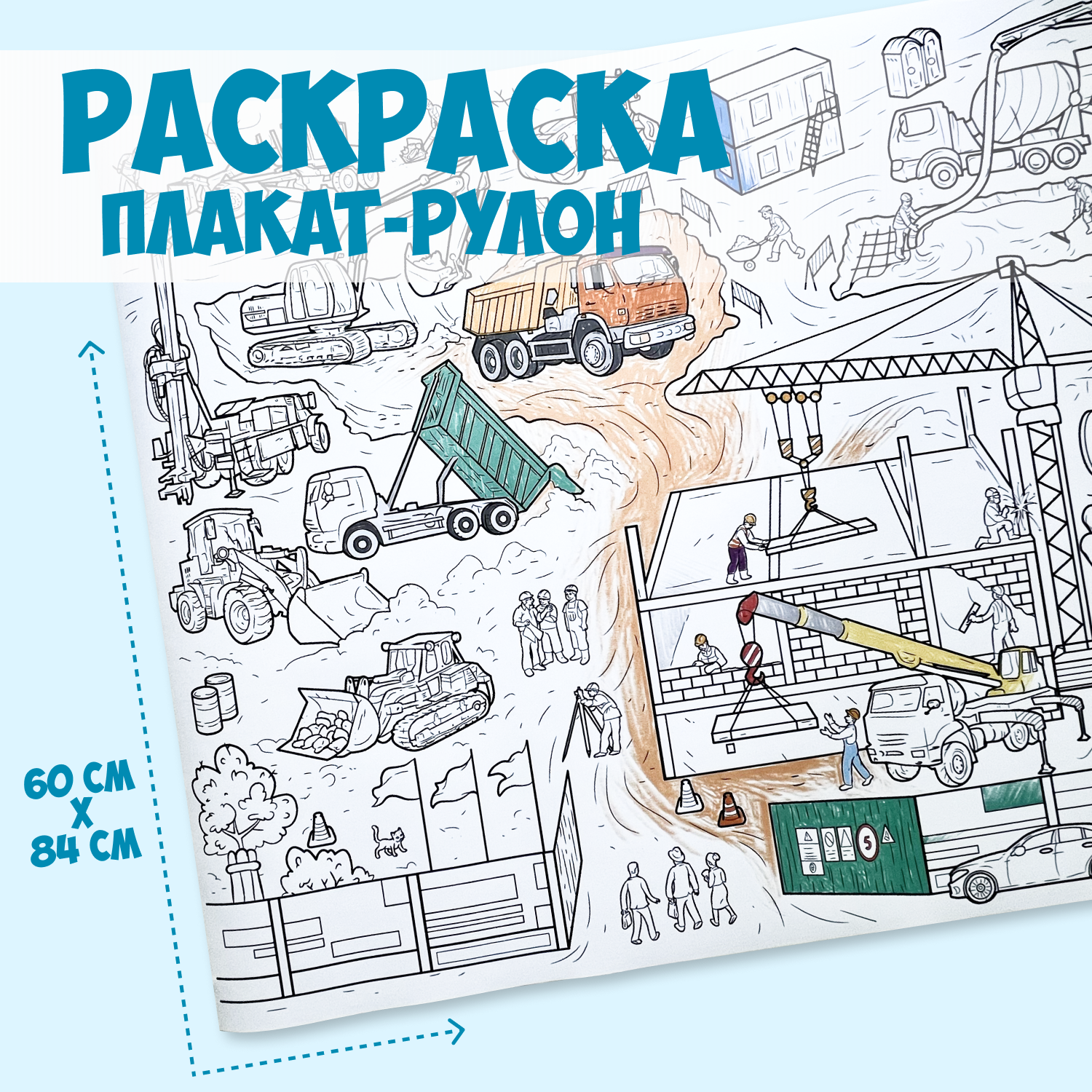 Большая раскраска для детей "Занимательная стройка", плакат-рулон интересное: