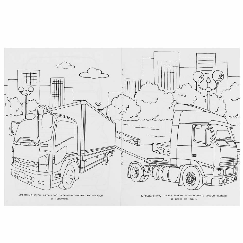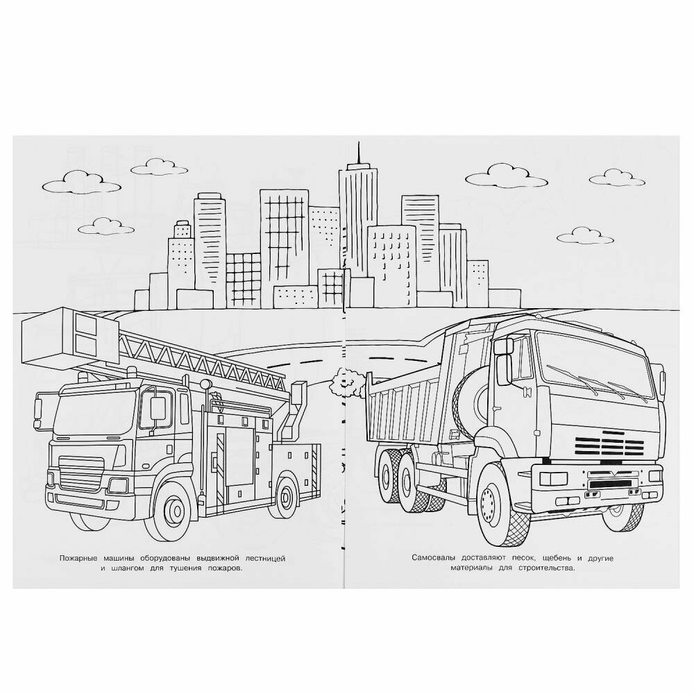 Раскраска Грузовики и спецтехника, 16 стр. Умка 978-5-506-09366-4 интересное: