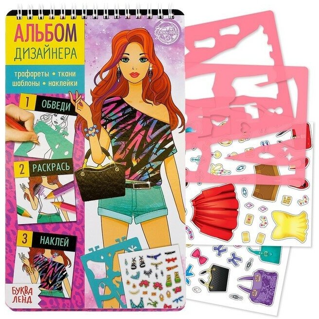 Книга с наклейками и трафаретами «Альбом дизайнера. Супермодель», 5278219 интересное: