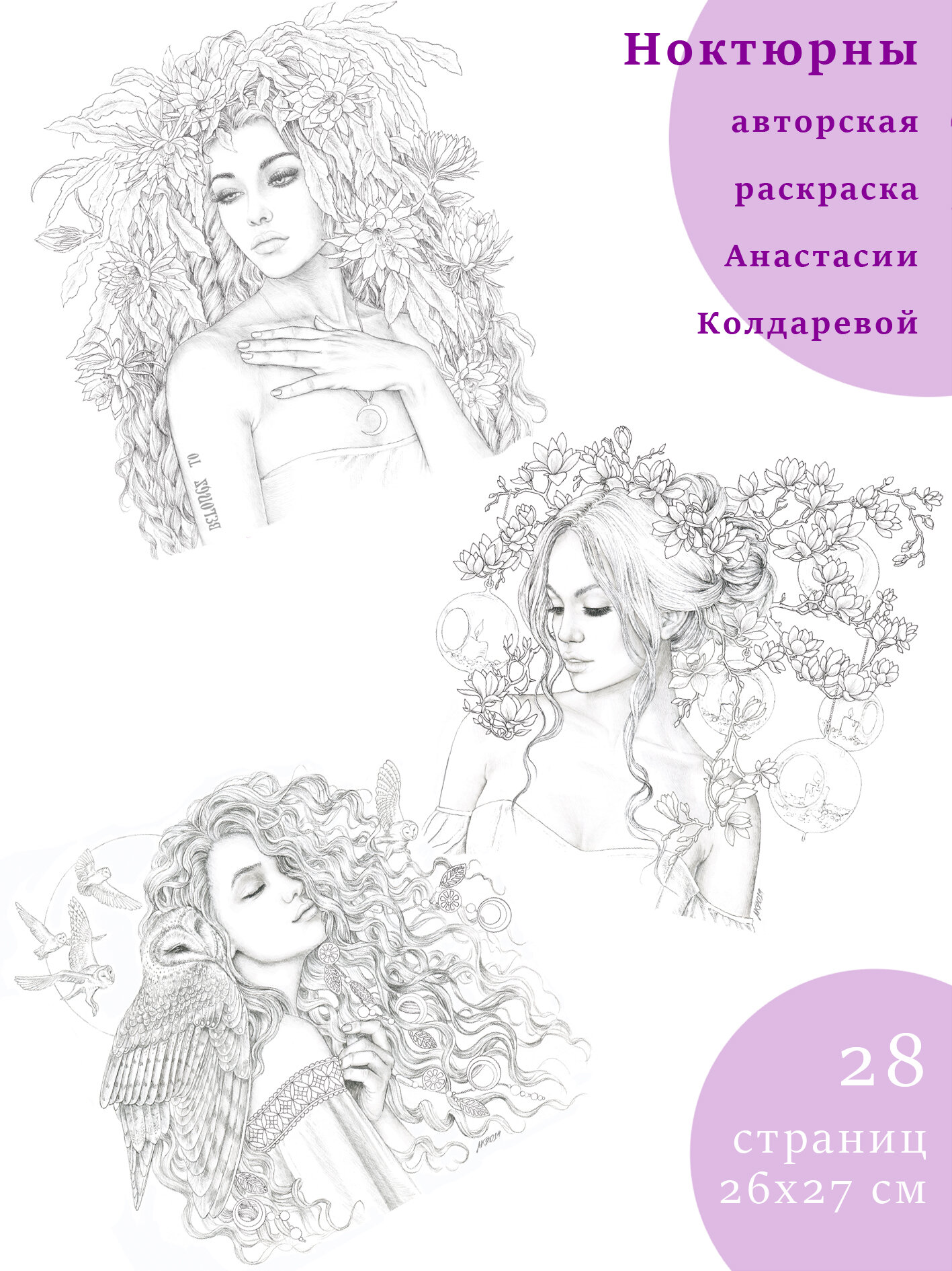 Купить Раскраска-антистресс "Ноктюрны", Анастасия Колдарева, 26х27 см, 28 иллюстраций