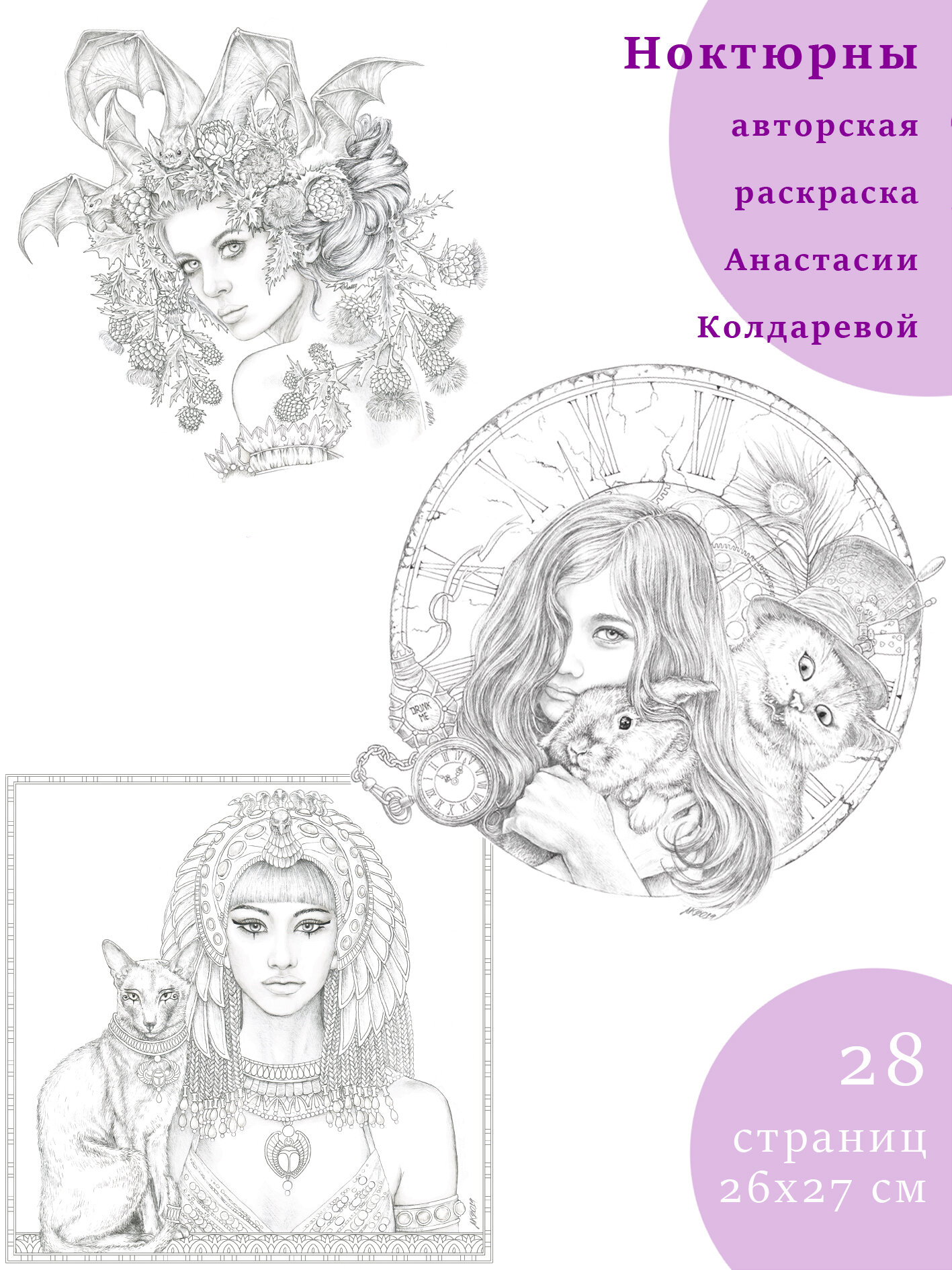 Раскраска-антистресс "Ноктюрны", Анастасия Колдарева, 26х27 см, 28 иллюстраций интересное: