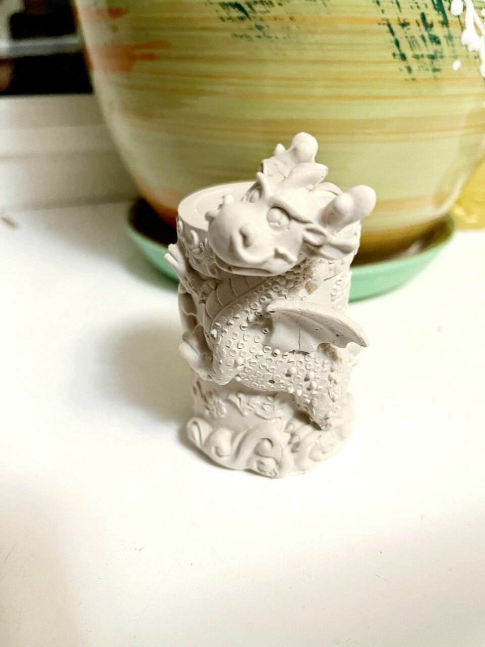 Дракон раскраска детская из гипса -кашпо для росписи интересное: